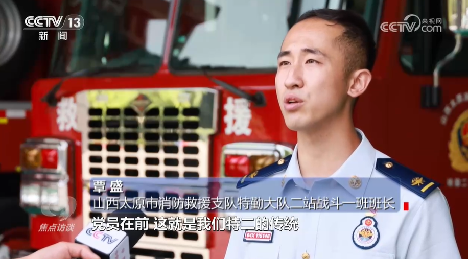山西太原市消防救援支队特勤大队二站战斗一班班长覃盛:“党员在前,这就是我们特二的传统。”