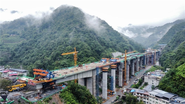 三秦都市报-三秦网讯 7月19日,中铁广州工程局市政环保公司西康高铁5标二工区桐木车站特大桥2×72m混凝土T构连续梁左幅顺利合龙,项目建设取得突破性进展,为西康高铁建成通车奠定坚实基础!