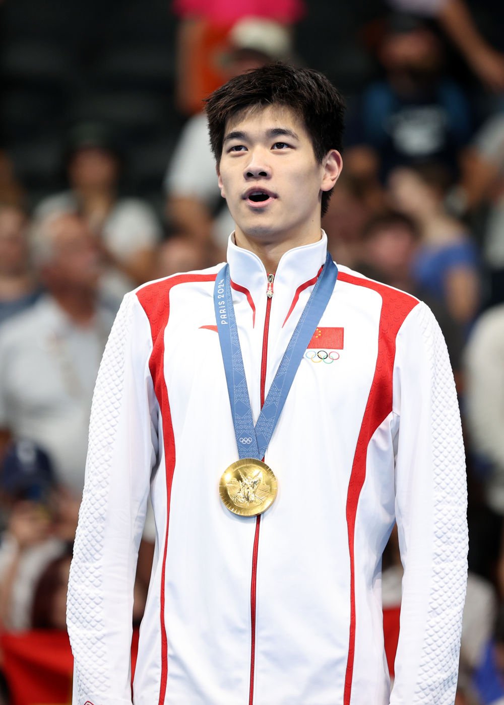 ↑中国选手潘展乐在颁奖仪式上。新华社记者 雒圆 摄