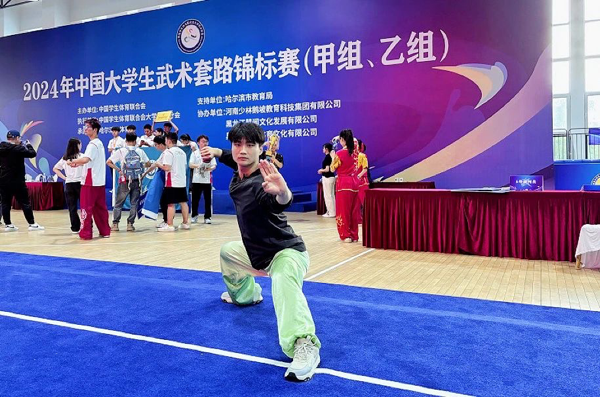 2024年中国大学生武术套路锦标赛(甲组、乙组)在哈尔滨市华德学院体育馆举行,本次锦标赛为期6天,以“青春热血·武动乾坤”为主题,由中国学生体育联合会主办,哈尔滨市体育局承办。来自全国的256支队伍1500余名武术爱好者和运动员在这里上演一场“武林盛宴”。