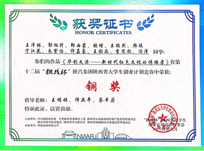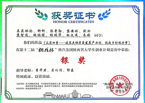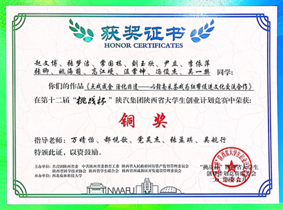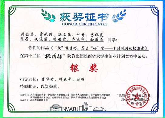 2、第十二届“挑战杯”陕汽集团陕西省大学生创业计划竞赛银奖!