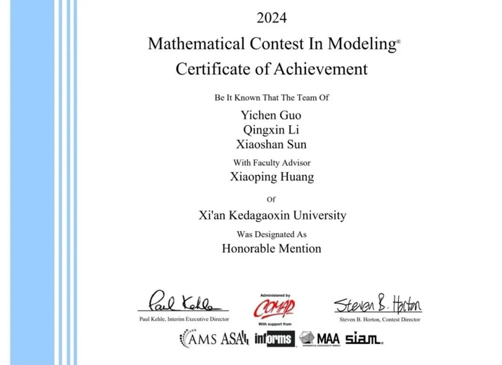 大学生数学建模竞赛成绩揭晓,由我校21级软件技术专业学生郭奕辰李青鑫、孙晓山组建的参赛团队,获得Honorable Mention奖简称H奖,即国际二等奖。