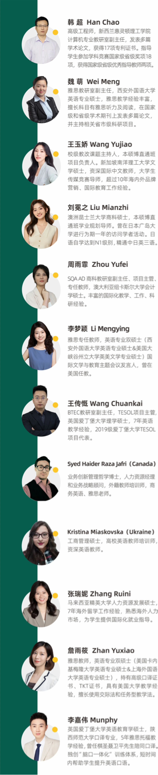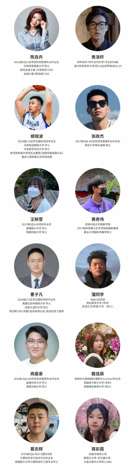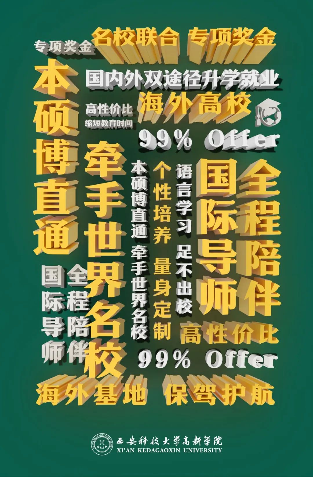 西安科技大学高新学院深知你对优质教育资源的渴望,致力于打造“国际化、应用型的高水平大学”。通过国际化的教育理念、校园氛围、师资团队、课程设计和多样化的海外知名高校合作项目,为学生提供高质量的国际化教育资源、打造更畅通的学历晋升通道。