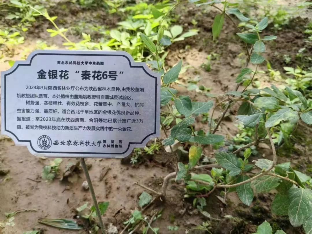 新品种金银花“秦花6号”,2024年陕西省林业厅公布为陕西省林木良种,由西北农林科技大学董娟娥教授团队选育。树势强、茎枝粗壮、有效花枝多、花蕾集中、产量大、抗病虫害能力强、品质好,是适合西北干旱地区的金银花优良新品种。据报道:至2023年底在陕西渭南、合阳等地已累计推广近 3 万亩,被誉为西北农林科技大学科技助力新质生产力发展实践中的一朵金花。