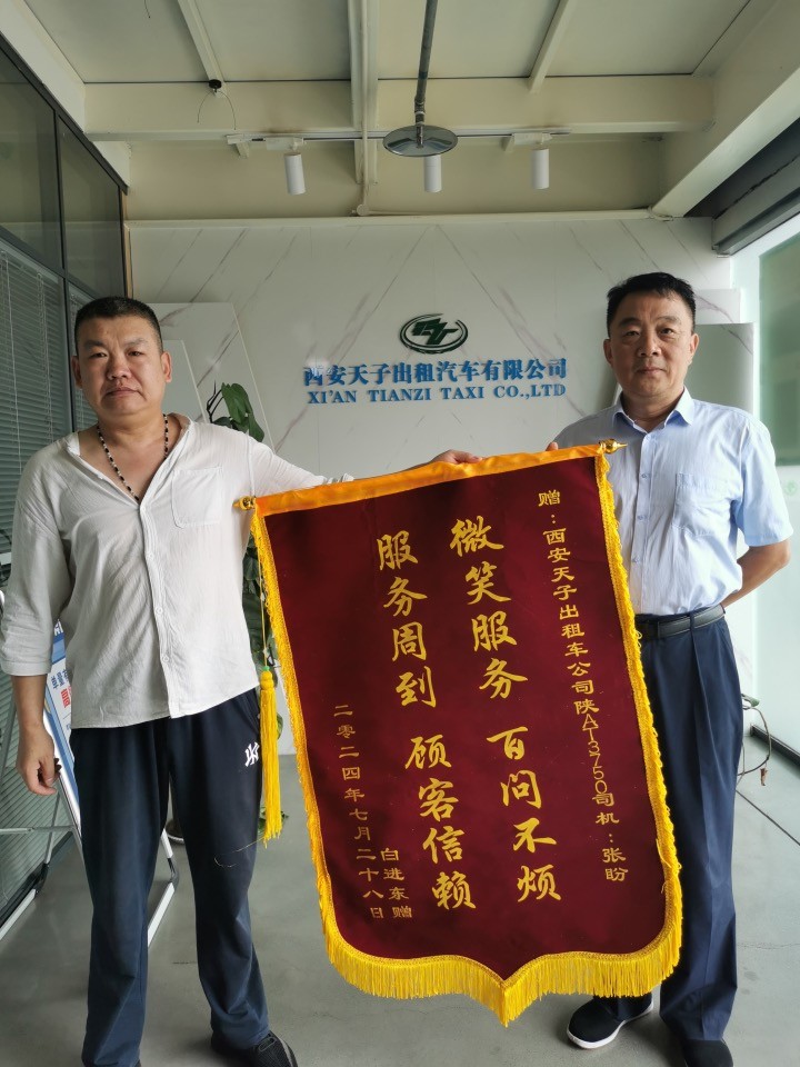 三秦都市报-三秦网讯(记者 陶颖)8月8日14时许,白先生带着一面锦旗来到西安天子出租汽车有限公司,为陕AT3750司机张盼向妻子提供帮助表示感谢。