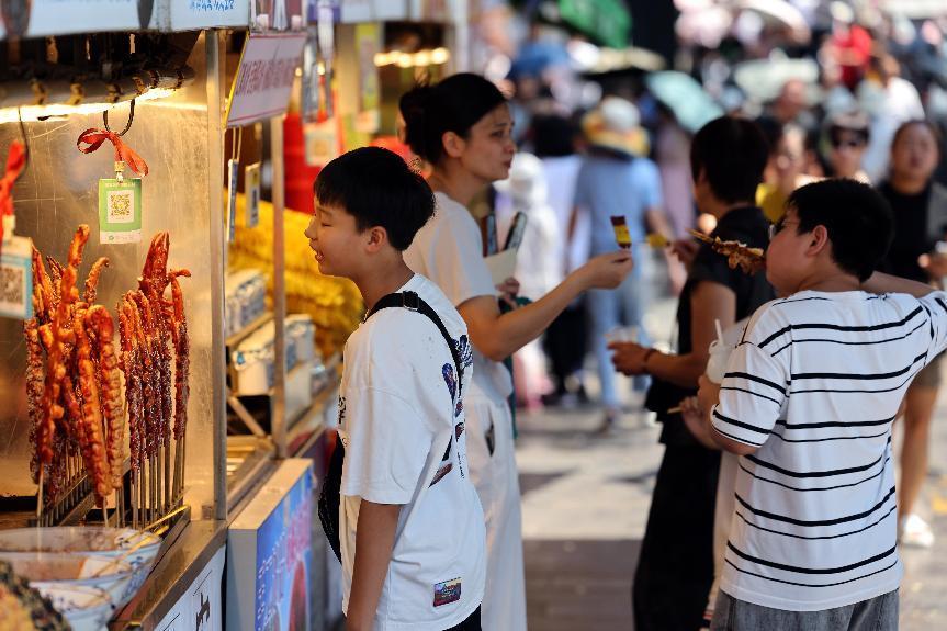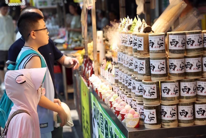 三秦都市报-三秦网讯(记者 代泽均) 8月13日,暑期已过半,西安旅游市场持续火热。在回坊风情文化街美食飘香,热闹非凡,吸引着游客打卡,品尝各种美食。