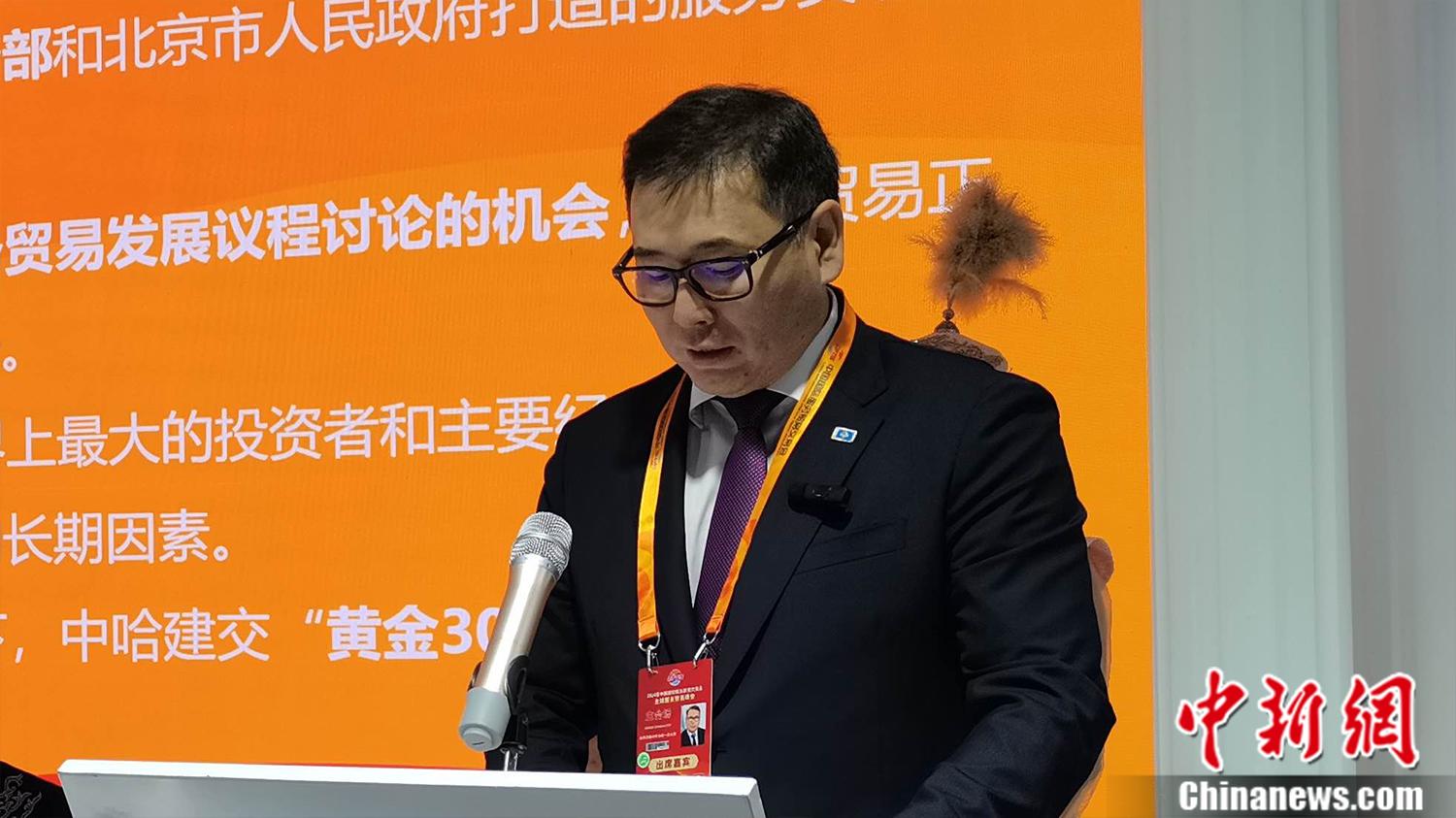 Arman Shakkaliyev, Kazakhstan's minister of Trade and Integration, delivers a speech at the opening ceremony of the national pavilion of Kazakhstan at the China National Convention Center in Beijing, on Sep. 12, 2024. (Photo provided by the interviewee)