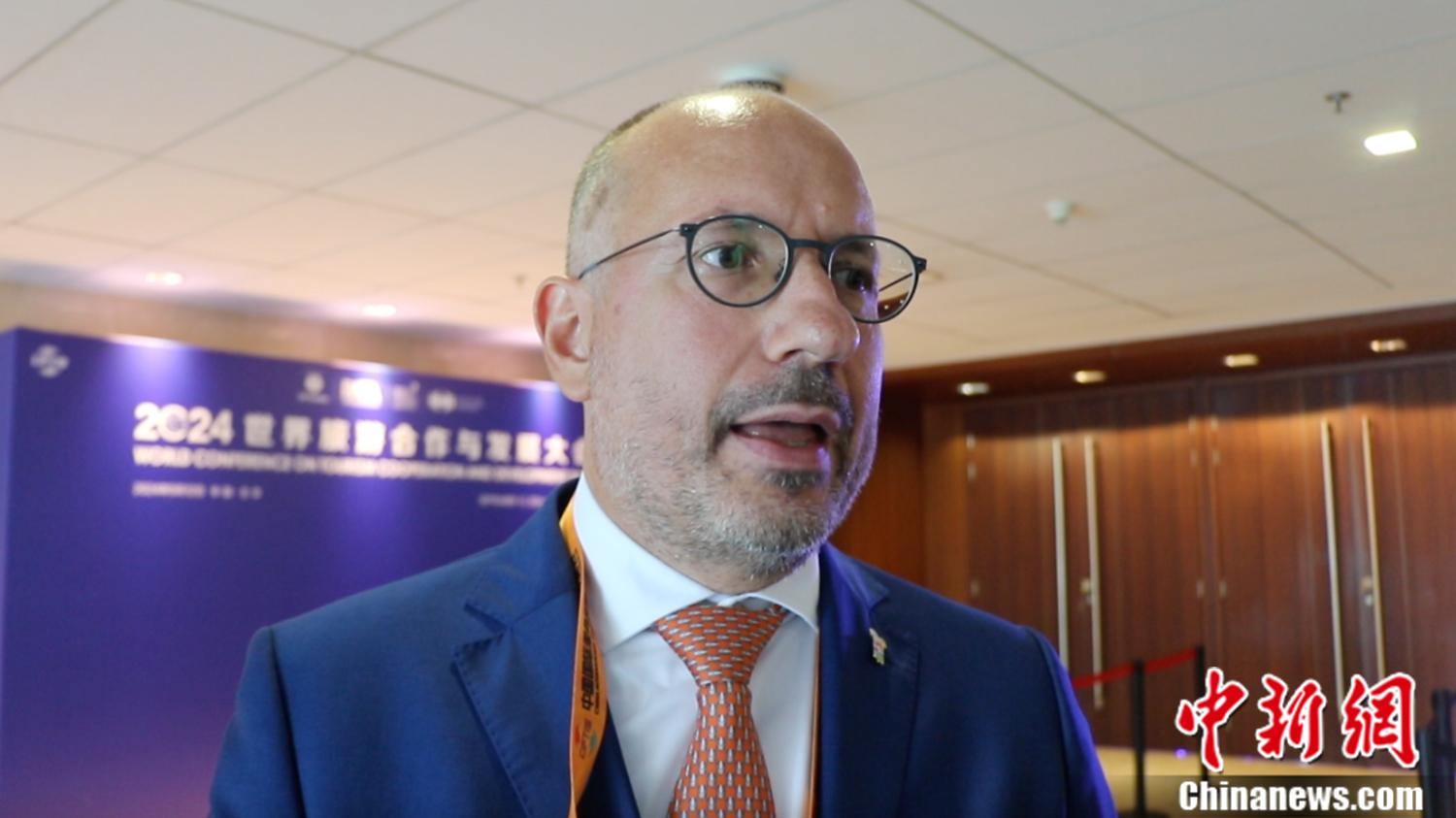 Dott. Maurizio Rasero, the governor of Province Asti, Italy, talks to China News Network at the China National Convention Center in Beijing, on Sep. 12, 2024. (Photo: China News Network / Wu Jiaju)