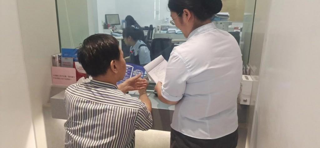 网点陆续来了其他客户,大堂经理向其他客户解释并获得理解后,继续耐心沟通并帮助听障客户办理业务。
