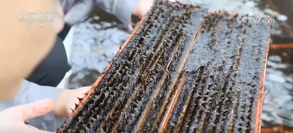 在福建省连江县官坞村海带育苗基地,黑压压的海带苗整齐有序地平铺在流动的海水里。渔民将一块块苗帘从苗池里打捞上来,解开绳结装入泡沫箱中,准备陆续运往大连。 这批海带苗是当地自主培育的海带苗,具有耐高温、产量高等特点,成活率超过95%,往年在大连海区养殖5到6个月时间,亩产新鲜海带可达30—35吨。