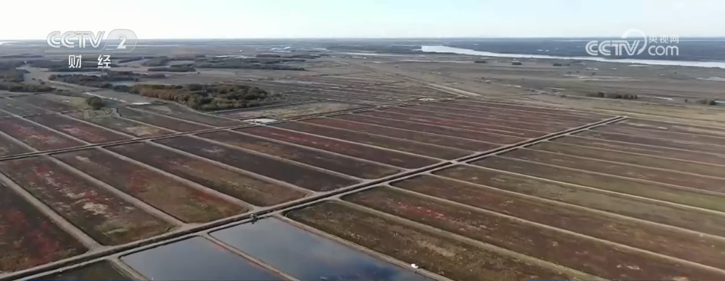 据记者介绍,抚远市的蔓越莓已经开始收获了。种植蔓越莓的地块和其他的作物地块不同,这个地块像是一个没有水的池塘。蔓越莓一般喜欢凉爽的环境,所以地块里铺设了先进的喷淋和排水系统。