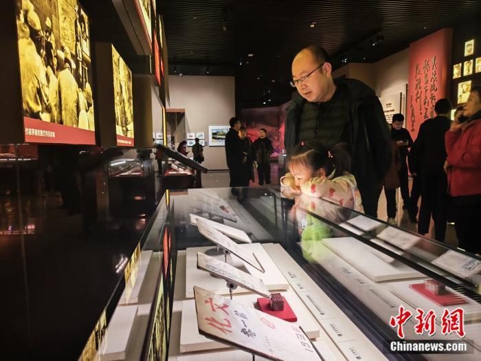 偌大展厅中,不少家长趁着周末带孩子来感受红色文化的熏陶。小朋友胡宇一尘对展览中的衣服、干粮等物品印象深刻:“我感觉他们很辛苦,成天打仗,穿的衣服破破烂烂。我以后也想跟他们一样,帮助我们的国家。”小一尘的妈妈则表示,希望女儿能通过这次参观,了解历史,珍惜现在的幸福生活。