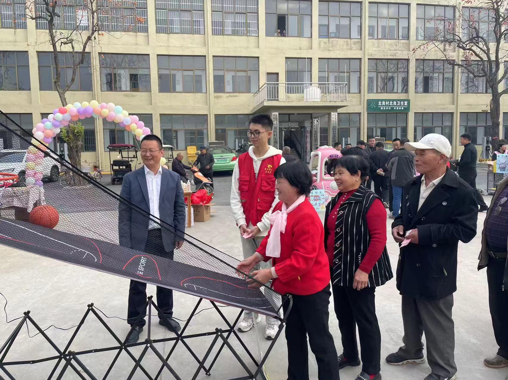 在黄良街道北良村农村互助幸福院内,各式各样的趣味挑战游戏吸引老人们的眼球,迷宫运球、投壶、滚铁环等传统游戏让老人们重拾童年的乐趣;保鲜膜涂鸦、抖乒乓球、盲盒墙等新式休闲打卡项目更是让老人们感受到时代的活力;此外,还有专为老年人改造的碰碰车、投篮机等游乐设施。老人们每完成一项挑战,便可获得美食券并有机会赢取礼品,在一项项的游戏和挑战中,老人们尽情享受游戏的乐趣。