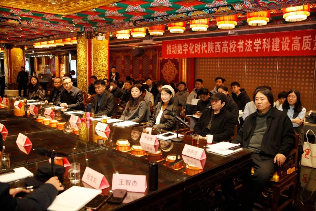 开幕式结束后,来自陕西十所高校的近50名书法学专业教师在亮宝楼文化艺术大厅举行了“(首届)新时代陕西高校书法学专业学科建设研讨会”。会议以“发挥资源优势,加强合作交流,推动数字化时代陕西高校书法学科建设高质量发展”为主题,围绕书法学科设立的现实意义、使命担当与未来发展动向、研究生教育与培养、美术与书法专业硕士学位申报对书法学专业毕业生就业,以及人工智能时代,数字化如何赋能书法学专业教学、书法学专业与其他相关专业的融合发展问题、书法学专业师范认证问题、如何利用陕西丰厚的文化资源进行特色发展等问题,各院校专业负责人展开热烈的发言讨论。