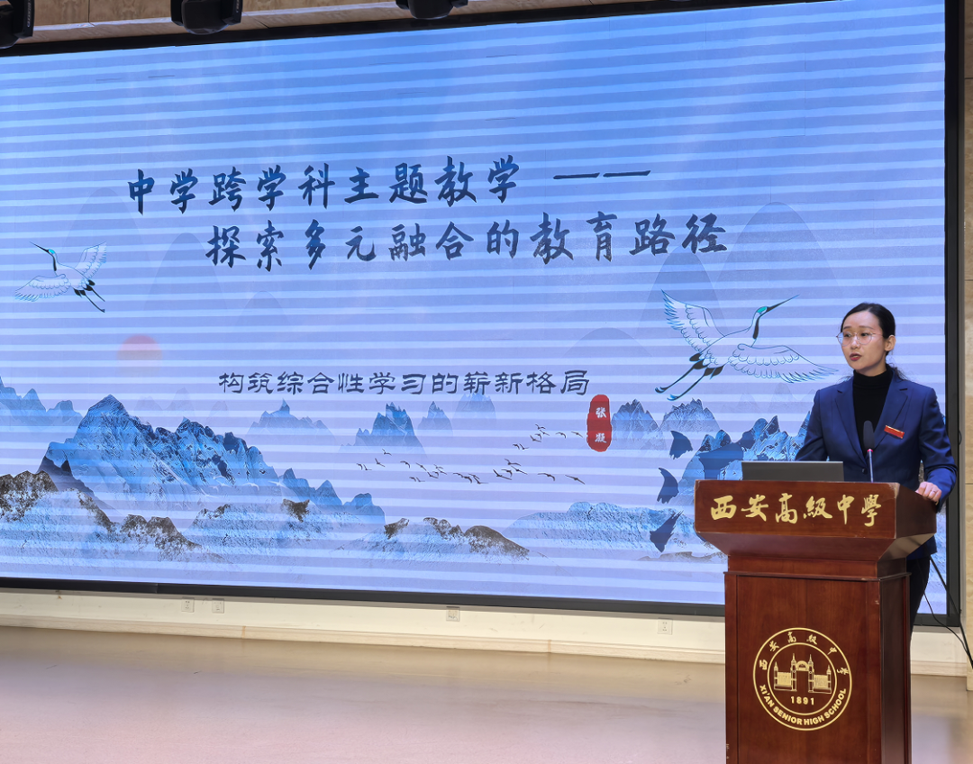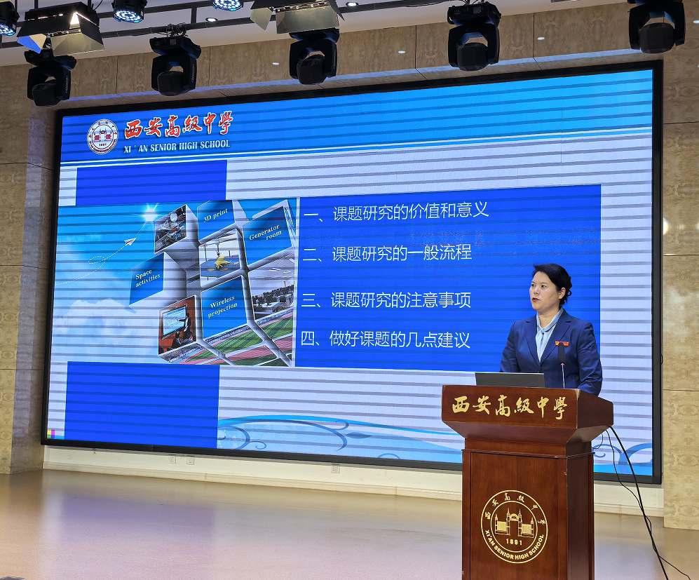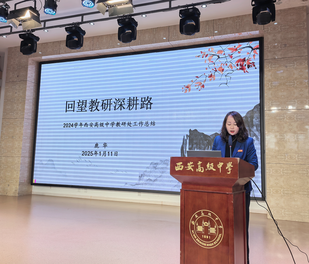 西安高级中学教研处副主任鹿华分别从工作回顾、科研成果、展望未来三个方面对2024年学校教科研方面的工作进行汇报。教研工作如同春雨般润物无声,却滋养了教学的沃土,催开了教育质量之花;精心打磨教研管理这把“犁”,完善制度,细化流程,让教研活动在规范的田野上有序耕耘;师资培训如同为教师插上“翅膀”,通过专家引领、同行交流,让教师在知识的天空中翱翔,专业素养和教学能力显著提升;教学创新如同播撒的“种子”,项目式学习、融合课堂等新型教学模式激发了学生的学习兴趣,让课堂焕发出勃勃生机。