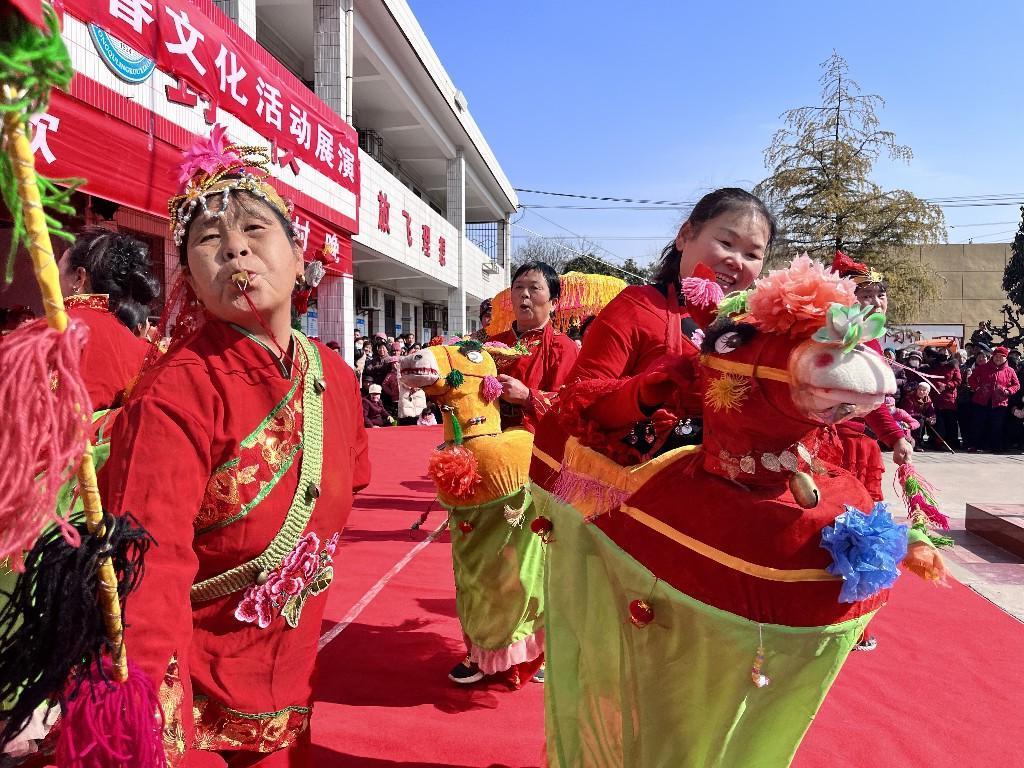 身着玫红色服装的演员们伴着《最炫民族风》的旋律活力起舞,动作整齐划一,引得不少观众现场“拜师学艺”。“咱们村的广场舞队带劲!”零口村村民张普肖竖起大拇指,各种表演不仅新颖时尚,还恰到好处地融入了地方特色和文化元素,让村民在家门口享受了一场乡村风味的文艺盛宴。