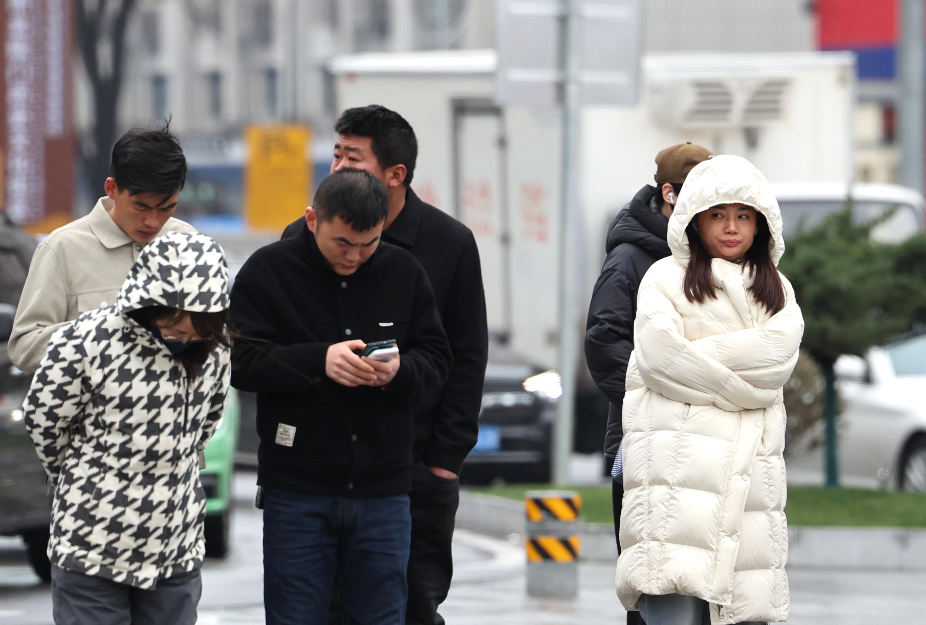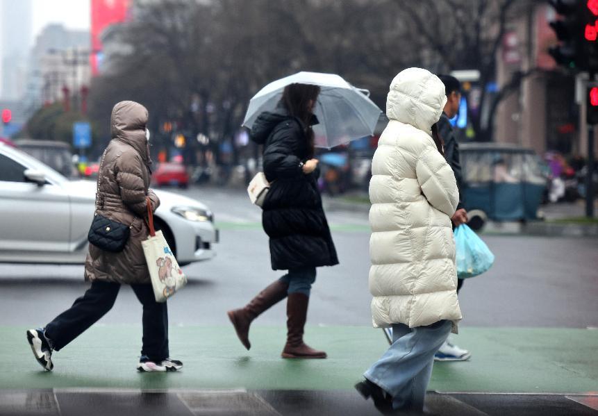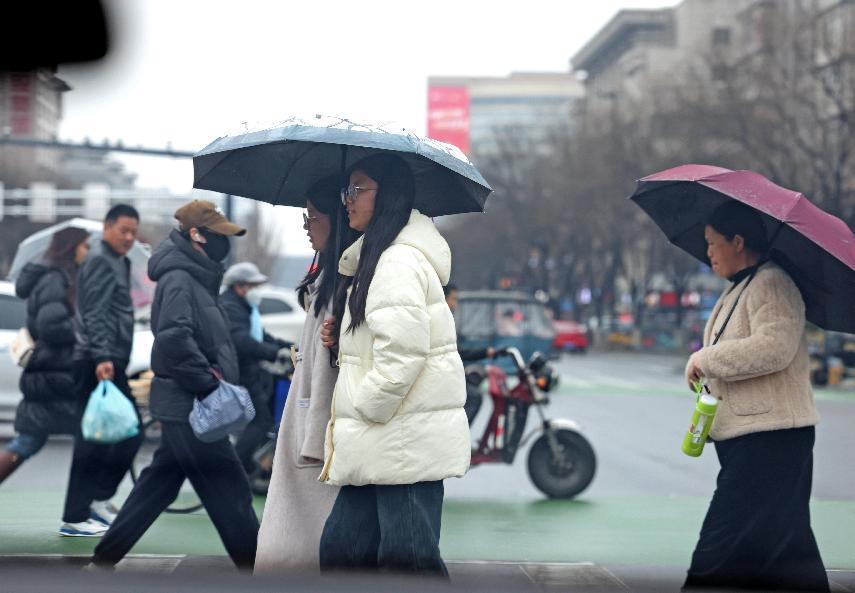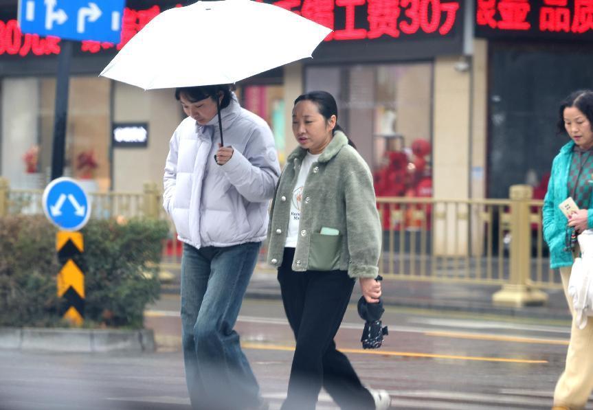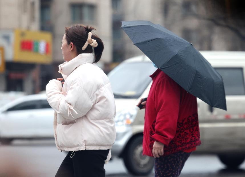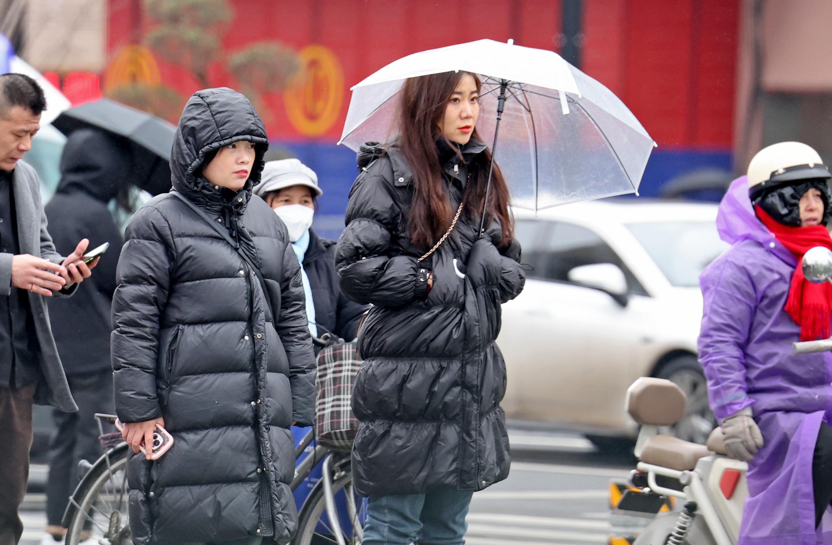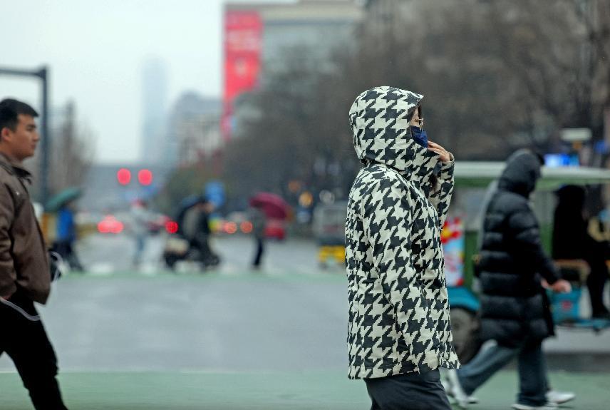 三秦都市报-三秦网讯(代泽均)3月3日,西安迎来降雨,气温也大幅下降,街头出行的市民不得不穿厚外套来抵御寒风。