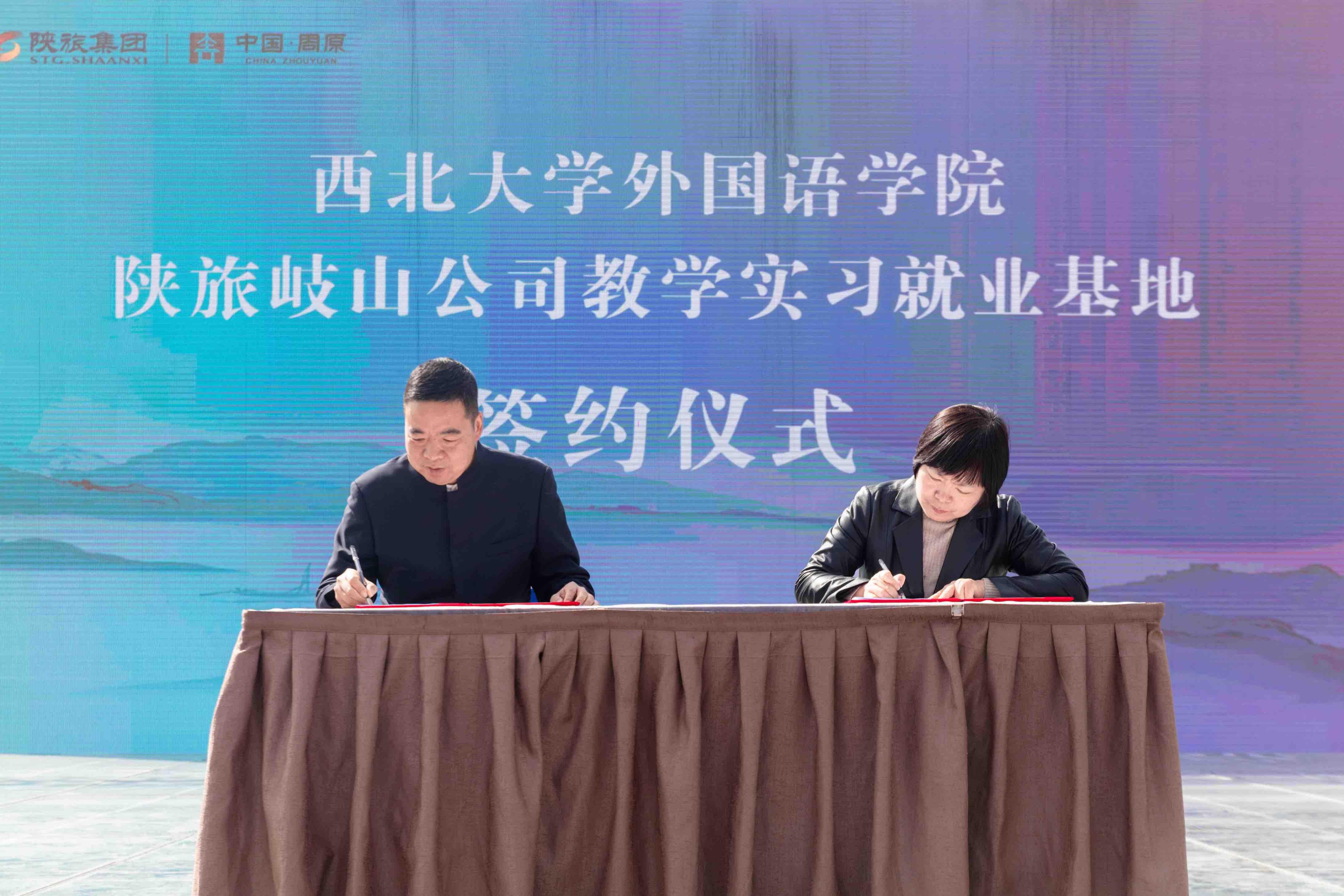 为落实立德树人根本任务,强化社会实践,促进产学研合作,西北大学外国语学院与陕旅岐山公司按照相互促进、共同发展原则,签订了教学实习就业基地合作协议,并举行了授牌仪式。西北大学外国语学院党委书记赵志厚表示,希望通过此次合作,与岐山公司在产学研项目、科研平台搭建、专业人才实践拓展等领域开展深入合作,共同推进陕西省文旅产业高质量发展。