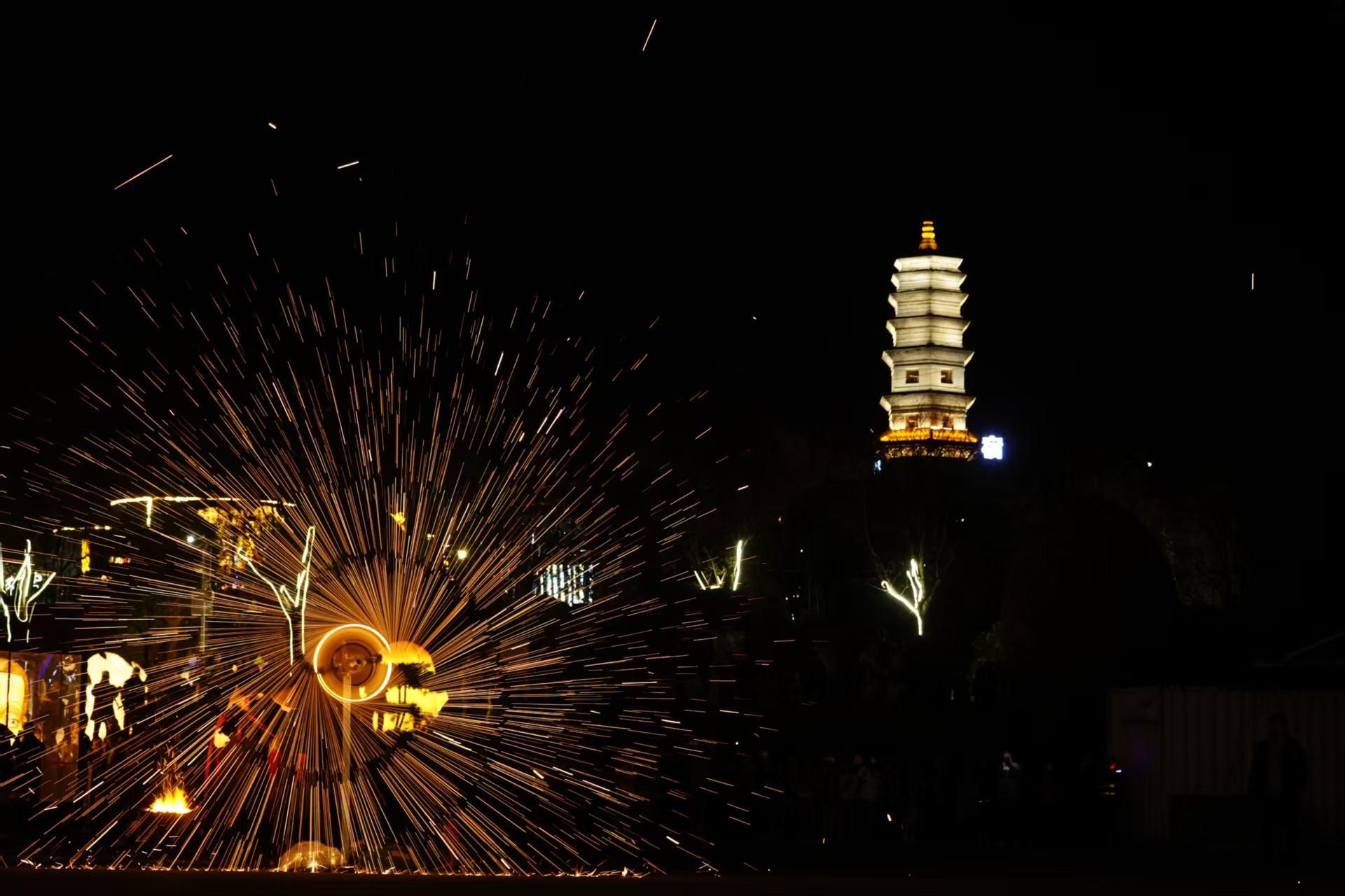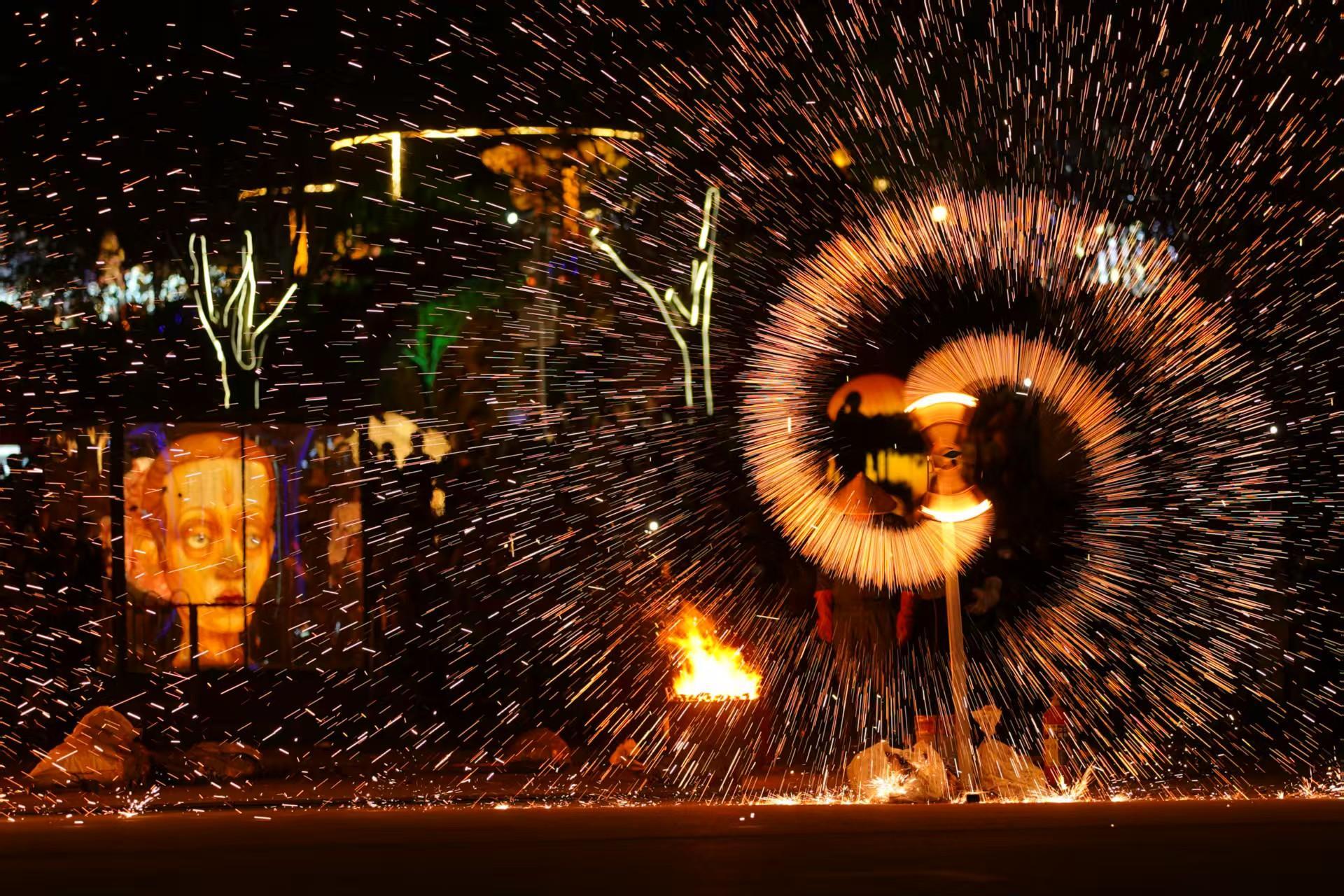 此外,游客从白天到晚上,从开城迎宾到上百场氛围演出,从“古代运动会”中体验投壶、蹴鞠等传统游戏的智慧;从安塞腰鼓与陇州秦鼓相互交织的震撼到大型非遗火秀——喷火、火壶与非遗打铁花的碰撞,万千火星如银河落瀑般绽放在白鹿原影视城的夜空;从梦幻山谷光影秀《夜谭·白鹿原》到《魔咖灯会·不夜白鹿原2025》,打造了一幅“人在画中游”的梦幻仙境,在一路有戏的氛围中将节日的情绪价值拉满。