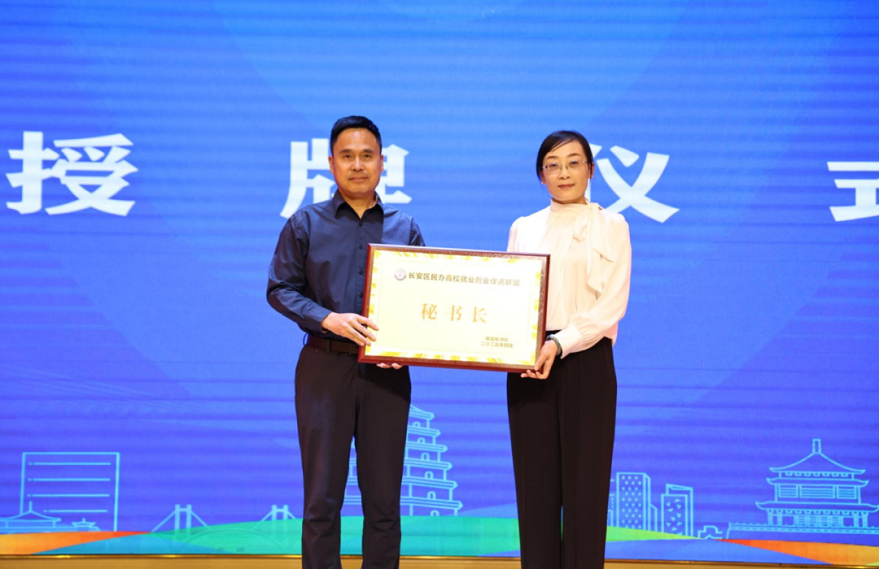 西安市职业介绍服务中心党委书记、主任吴强为高新学院授轮值秘书长单位牌