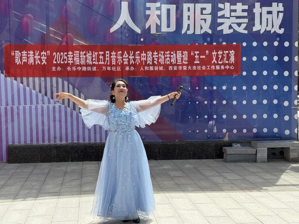 三秦都市报-三秦网讯(记者 成东丽)在“五一”国际劳动节即将来临之际,为弘扬新时代劳动精神,4月23日上午,由西安市新城区长乐中路街道办事处、万年社区联合主办的“歌声满长安”2025幸福新城红五月音乐会长乐中路专场活动暨迎“五一”文艺汇演活动在人和服装城广场举办。新城区文化馆、长乐中路街道办事处相关领导参与指导,数百名社区居民参加,共赴这场以劳动赞歌为主题的文艺盛宴,用歌声与舞姿描绘春日美好画卷。