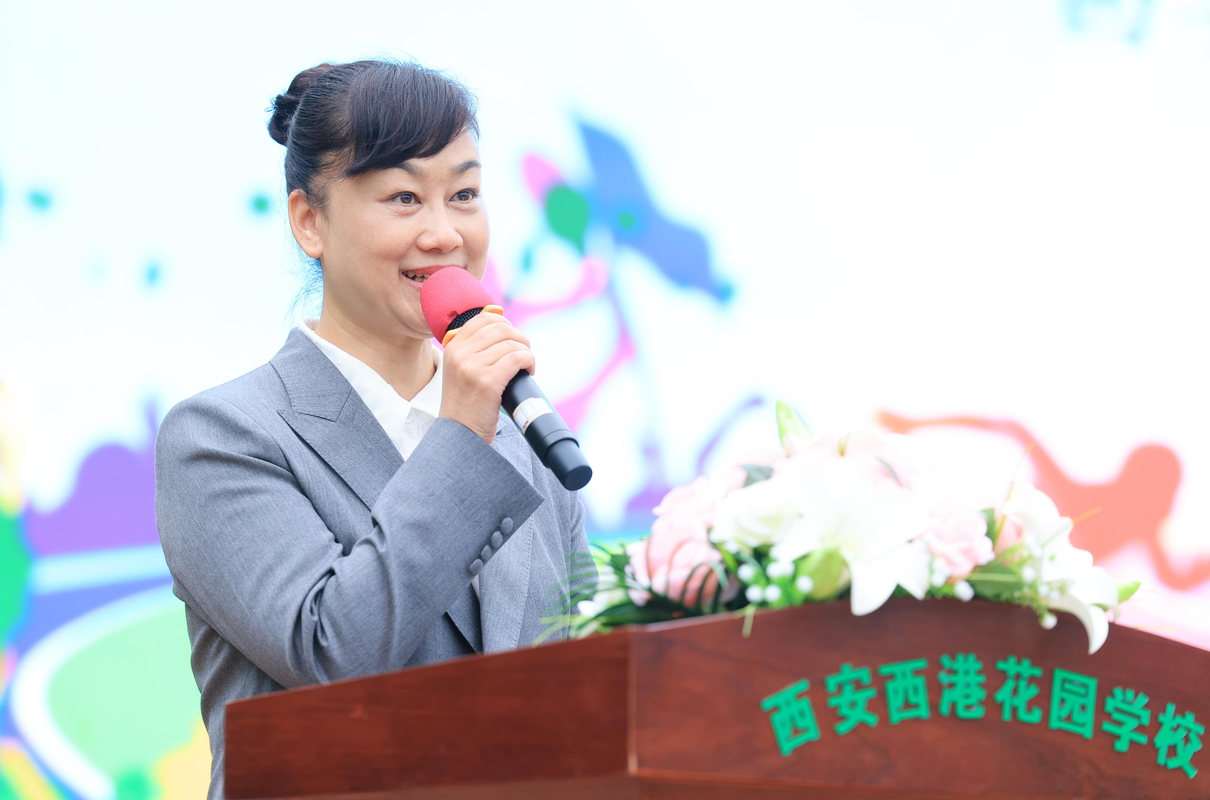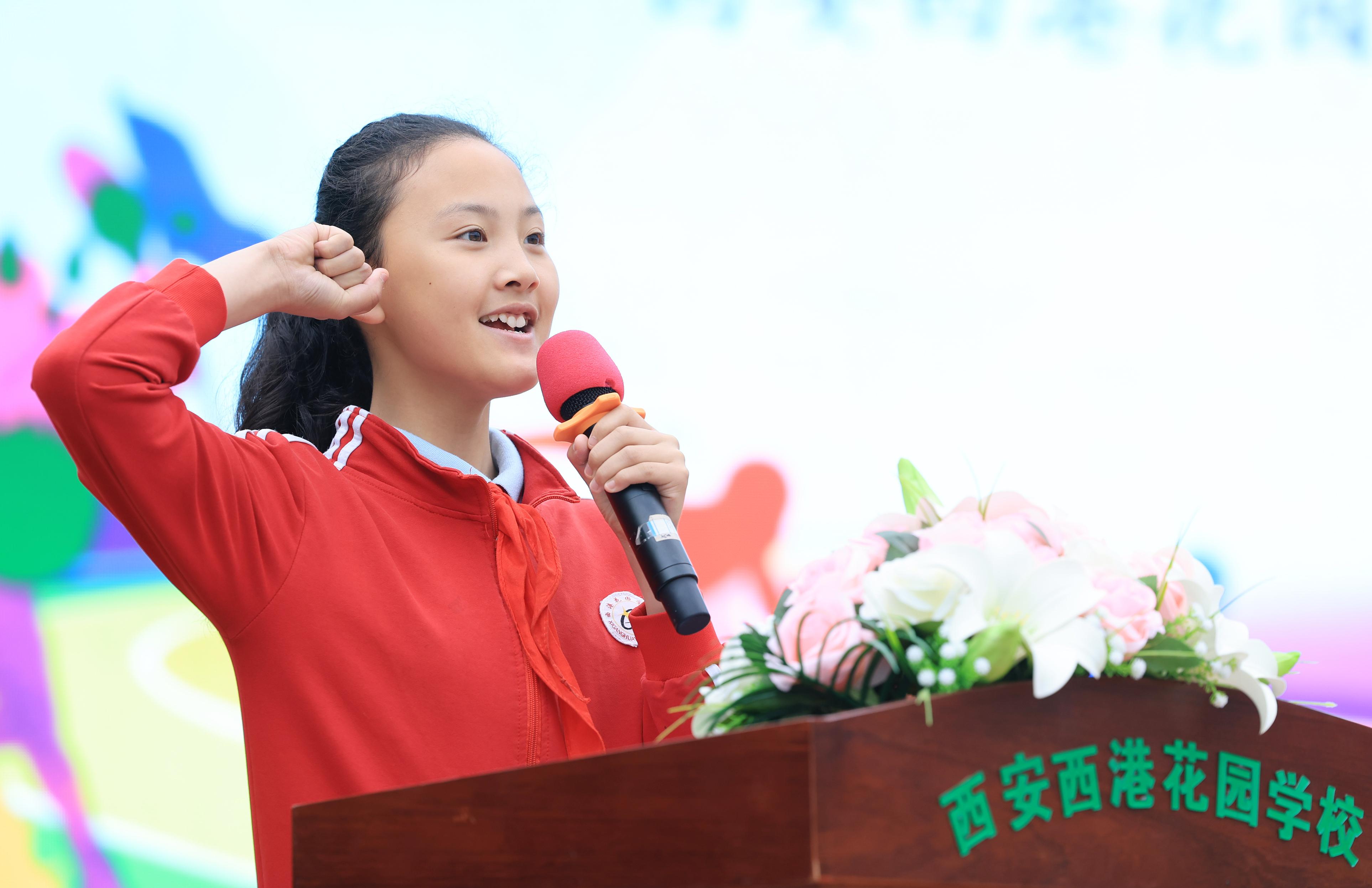 “全体裁判员将严格执行竞赛规程,以专业态度守护赛场的公平正义!”裁判员代表张浩南的铮铮誓言响彻全场。运动员代表六年级九班丁梦萱的宣誓则展现竞技风范:“我们将以体育精神为指引,在尊重中切磋技艺,在拼搏中超越自我。”庄重的宣誓仪式后,西安西港花园学校副校长秦玉梅在致辞中强调运动的意义,鼓励学生拼搏并将运动精神融入学习。她表示,比赛场上风云激荡,但比成绩更珍贵的是运动员敢于挑战的勇气和永不言弃的信念,真正的胜利,是战胜过去的自己。并寄语同学们以本次运动会为契机,把赛场上迸发的激情转化为前进的动力,在成长的赛道上披荆斩棘、勇攀高峰!