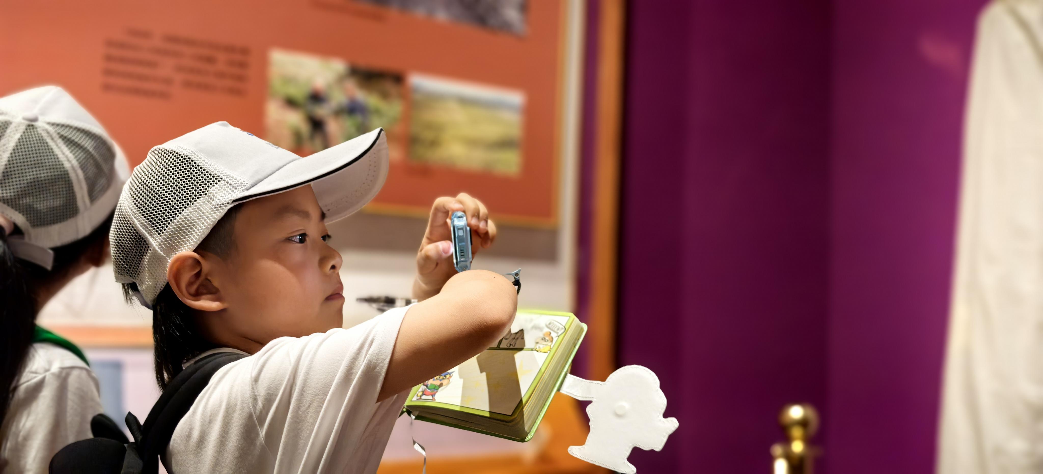 非遗展演区掀起阵阵惊叹。长嘴壶茶艺师手腕轻旋,滚水如银练入杯;皮影戏《东郭先生》幕布后,非遗传承人十指翻飞,让纸偶“活”了起来。五年级14班张格芝举着采访本追问:“您练了多久才能让驴子踢腿?”得知每个动作需苦练一年,她感慨:“原来非遗不是魔法,是汗水浇灌的花!”