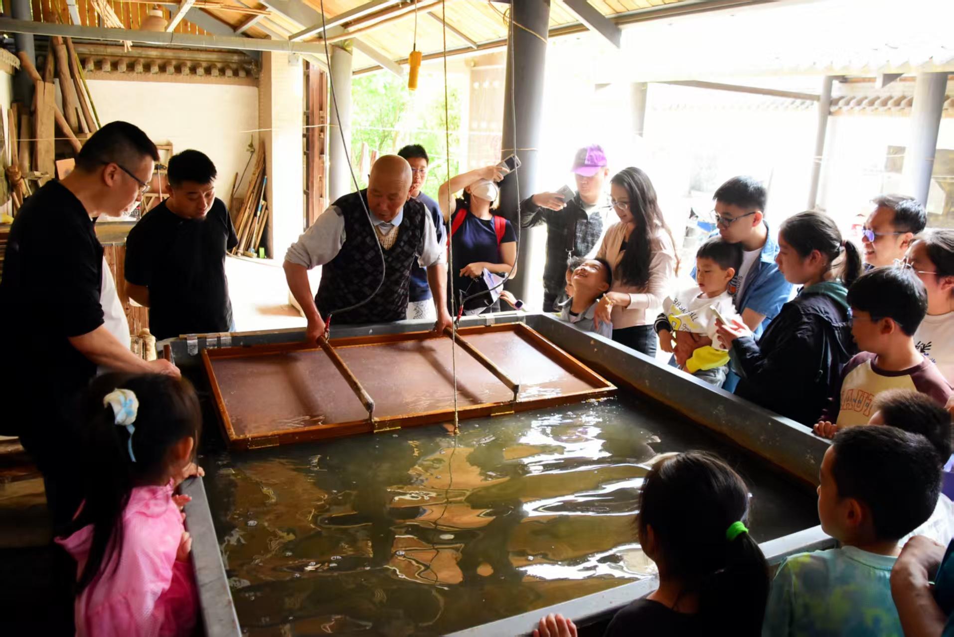 三秦都市报-秦闻讯(杜成轩 记者 陈飞波)4月26日,20余名小学生在家长的带领下走进长安区北张村楮皮纸抄制技艺传习所,了解纸张发展的历史,体验古法造纸手工技艺,在趣味活动中感受传统文化的魅力。