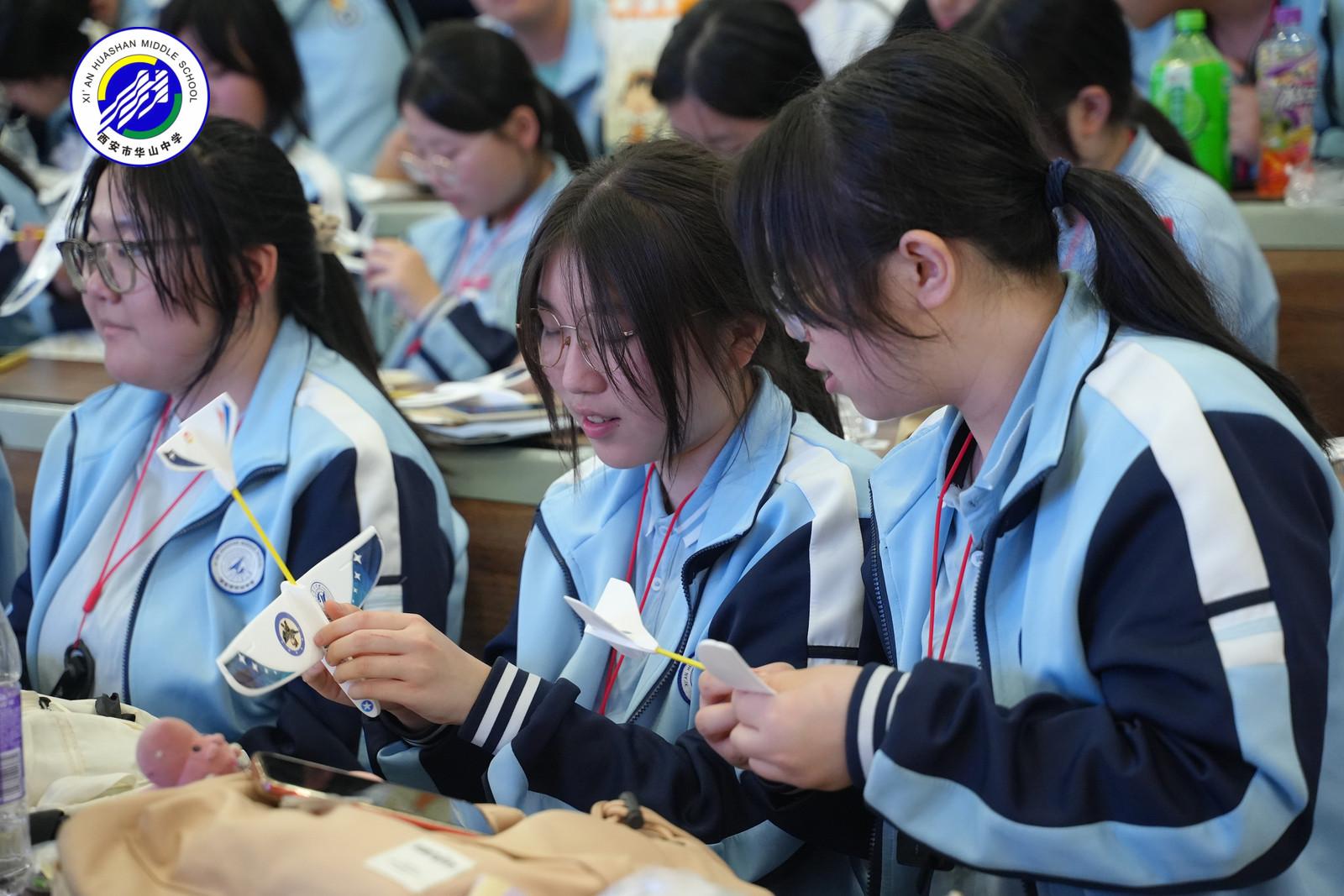 “才学似华,德品如山”是西安市华山中学的办学理念,也是华山中学学子的底色,在“从学霸到总师——西工大前辈的进阶之路”的交流活动中,来自菲律宾的留学生李睿泽分享了自己在西北工业大学的生活和工作,他激励同学们在最好的年纪,做最美的学习者和奋斗者。在了解了航空器的分类、结构以及飞行原理之后,在老师的指导下,同学们亲身体验制作了航空模型,看着手中小巧的“飞机”同学们一脸的笑容和满足。