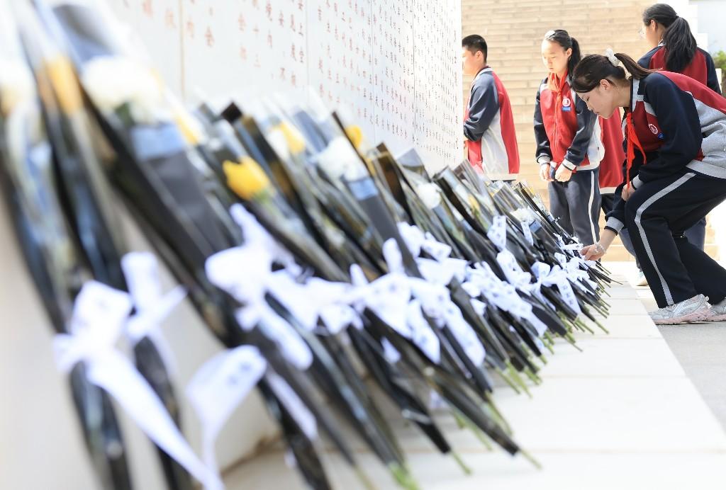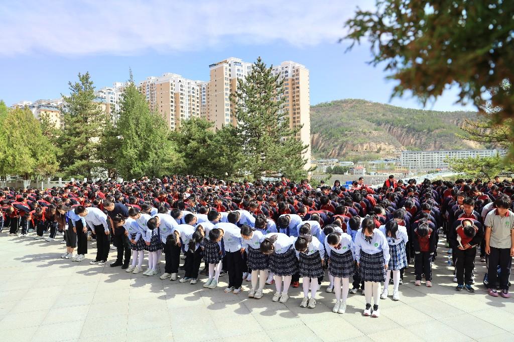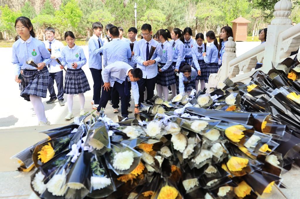 晨光中,层层叠叠的菊花依次铺陈,每一朵都寄托着青少年对先烈的无限追思。当书本上的知识化作眼前的实物史料,抽象的红色精神变得具体可感。初二学生张田禹感触很深:“来到延安四八烈士陵园,'震撼'两字在我心中回荡,令我印象最深刻的便是今天的幸福生活来之不易,我也会将革命先辈不屈不挠的精神带入我的日常学习生活中去。”
