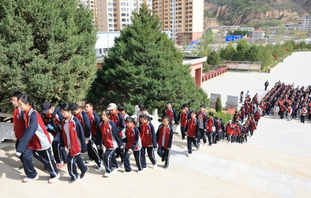 三秦都市报-三秦网讯(记者 陈飞波 郭子荻)4月29日,“我要去延安——‘三秦学生记者’思政课社会实践活动”开展的第二天,西安市雁塔区第一中学的“三秦学生记者”及老师们来到了杨家岭革命旧址和四八烈士陵园。在这里,学生们聆听了革命先辈们的感人故事,举行了特殊的共青团入团仪式,开启了一场行走的思政课,记录的思政课,感悟的思政课。