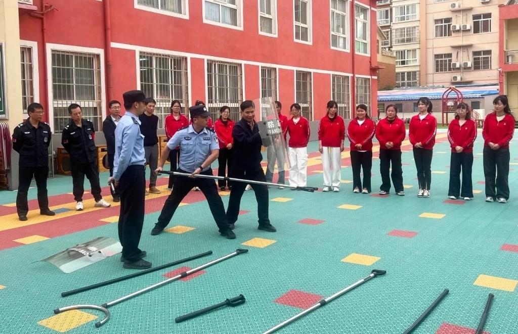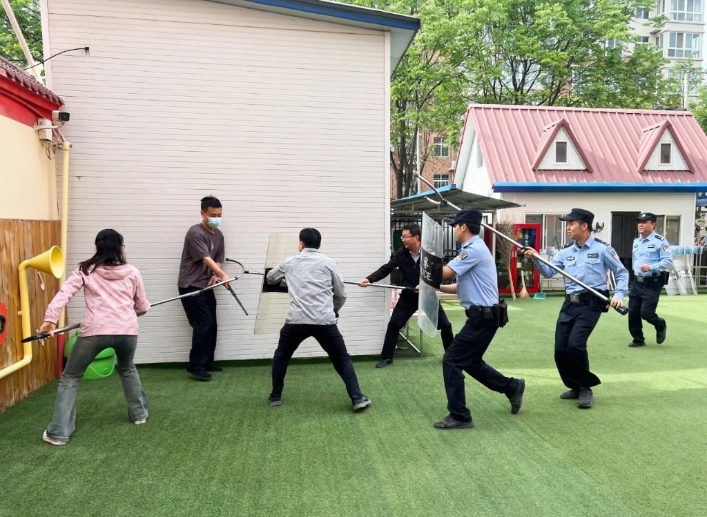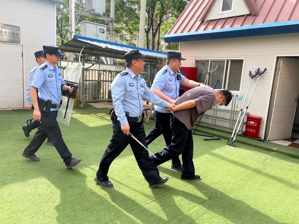 演练中,一名“歹徒”手持凶器强行闯入幼儿园,保安人员发现险情后,立即启动一键报警装置,并手持防暴器械上前阻拦。教师们听到警报声后,立即组织幼儿躲进教室,关闭门窗,并用桌椅等物品堵住门口,防止“歹徒”闯入。城关派出所民警迅速赶到现场,与保安人员一起将“歹徒”制服。