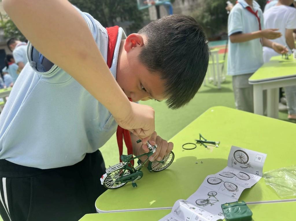 当天的活动中,还进行了男生拼装自行车,老师制作马赛克杯垫比赛。