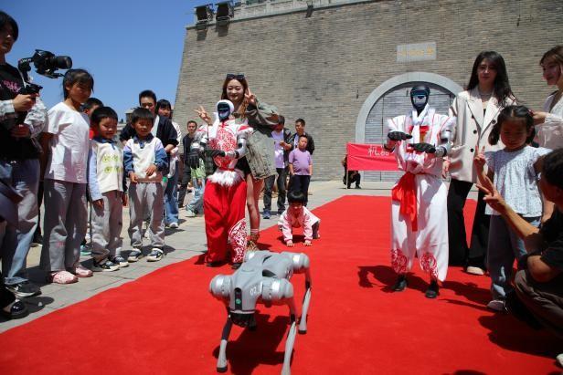 在金延安旅游度假区,人潮涌动,热闹非凡,身着陕北特色风情服装的智能机器人和机器狗以精彩的跳舞、扭秧歌才艺,献上传统文化与现代科技融合的“跨界演出”。与此同时,同期举办的延安YA动漫展聚集了数百名二次元爱好者,展区内热闹非凡,让游客仿佛置身于梦幻的“动漫王国”。