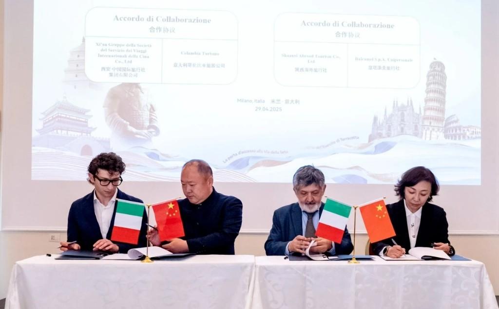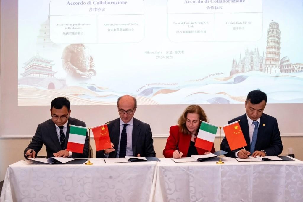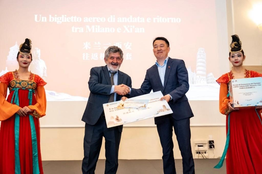 陕西省旅游协会、陕旅集团、西安国旅、陕西海外旅行社分别与意大利温泉协会、意中协会、意大利哥伦比亚旅游公司、意塔康美旅行社签署了合作协议。多位幸运嘉宾还通过抽奖,获得了来自陕西文旅企业准备的惊喜大礼包。