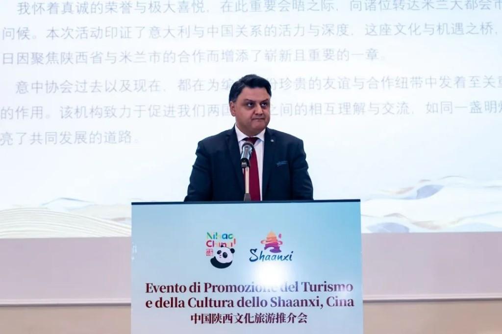 三秦都市报-三秦网讯(记者 夏明勤)记者从省文旅厅获悉,当地时间4月29日,陕西省文化和旅游厅与中国驻罗马旅游办事处共同主办的陕西文化旅游推介会在意大利米兰成功举办。陕西省人民政府副省长徐明非,中国驻米兰总领事馆总领事刘侃,中国驻罗马旅游办事处主任陈建阳,意大利伦巴第大区政府议员、文化常设委员会副主席加迪·塞尔吉奥,米兰市副市长瓦萨洛·弗朗西斯出席活动并先后致辞。陕西省文化和旅游厅副厅长郑晓燕主持推介会。