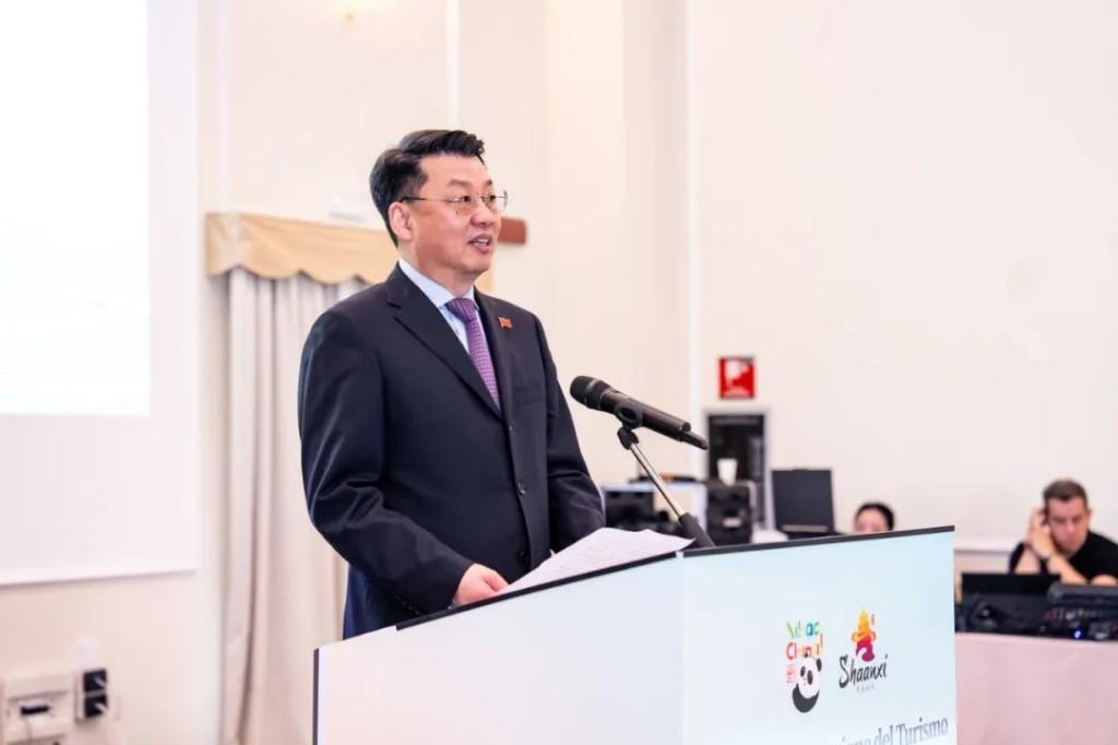 徐明非副省长致辞徐明非在致辞中表示,陕西是触摸千年文明脉动的典藏宝库,是饱览山河形胜气象的天然画廊,是体验多彩民俗风情的文化殿堂,盛情邀请意大利朋友到古老与现代交相辉映、人文与山水相得益彰的陕西做客,亲身感受古丝绸之路起点、今“一带一路”重要节点的独特魅力。陕西也将以此次推介会为契机,进一步加强双方人员往来,深化人文交流,推动互办文化艺术展览、共享非遗技艺,携手打造更多旅游精品线路和项目,让文明对话的桥梁更加坚实,让民心相通的纽带更加紧密,为深化中意互利合作作出积极贡献。