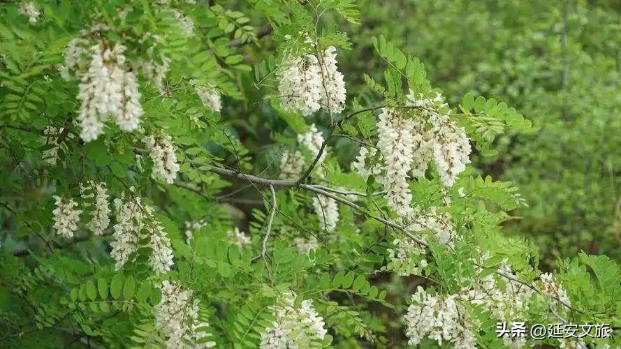 延安的槐花,是春日里藏在沟壑梁峁间的浪漫。每年五月,延安市郊洋槐树相继开花,一串串素白的花穗垂满枝头,像碎玉缀满