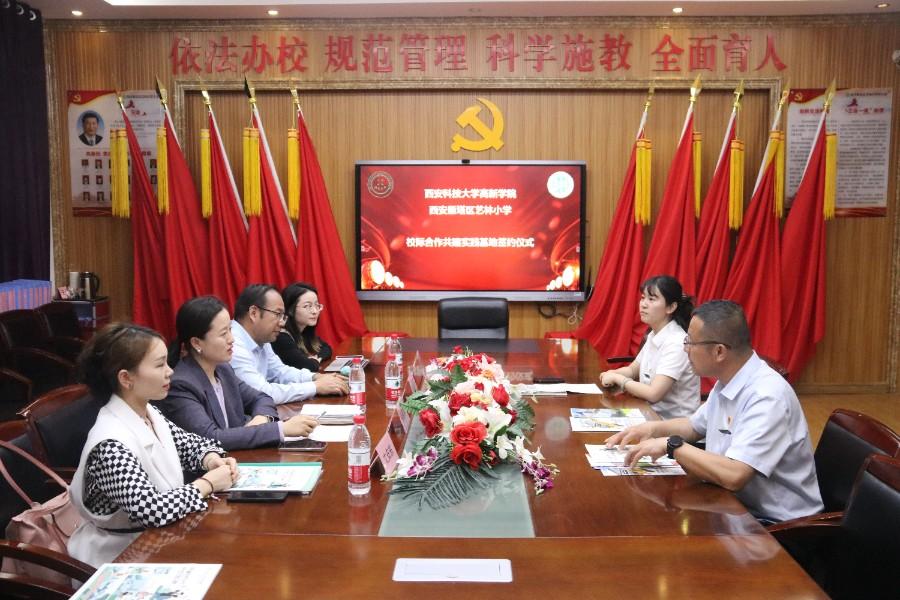 三秦都市报-秦闻讯(记者 农思思)近日,西安科技大学高新学院国际教育与人文学院与西安雁塔区艺林小学共建教学实践基地签约仪式在艺林小学举行。该校国际教育与人文学院副院长刘清波、国际教育与人文学院副院长兼教务处副处长张芸芸等领导参会。