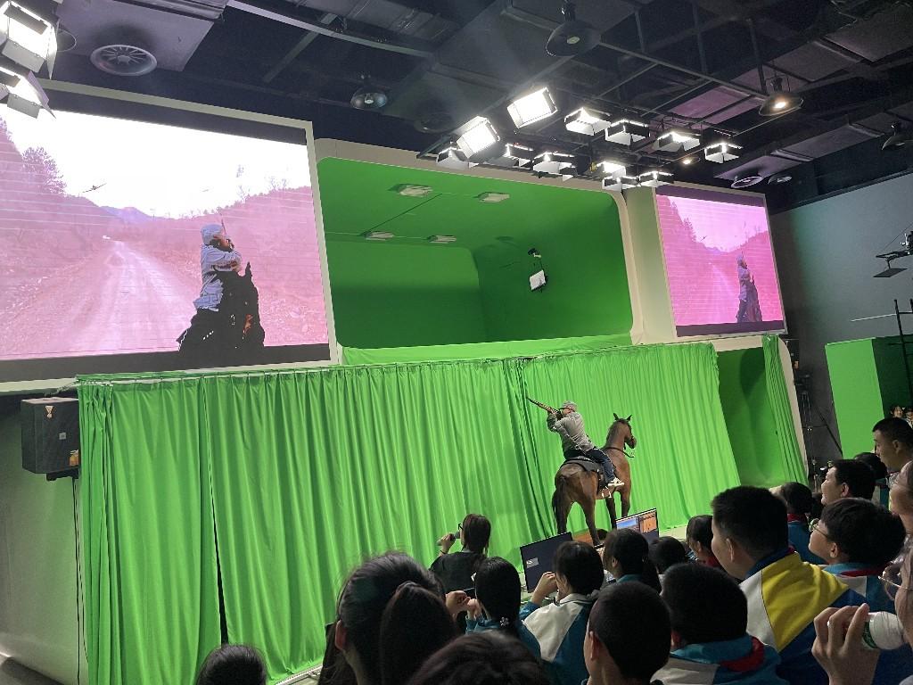 在白鹿原影视城,孩子们通过观察屋内陈设、体验非遗手工脸谱的制作、聆听讲解等方式,对关中地区的民俗文化有了更直观的认识和了解。电影科技馆的绿幕拍摄体验将活动推向高潮,孩子们化身电影主角,站在绿幕前摆出各种造型,通过抠像技术和后期合成,他们的身影被嵌入到不同的电影场景中。当看到自己翱翔天际或“穿越”到古代战场驰骋的画面时,大家兴奋地互相分享,并对电影拍摄背后的科技奥秘惊叹不已。