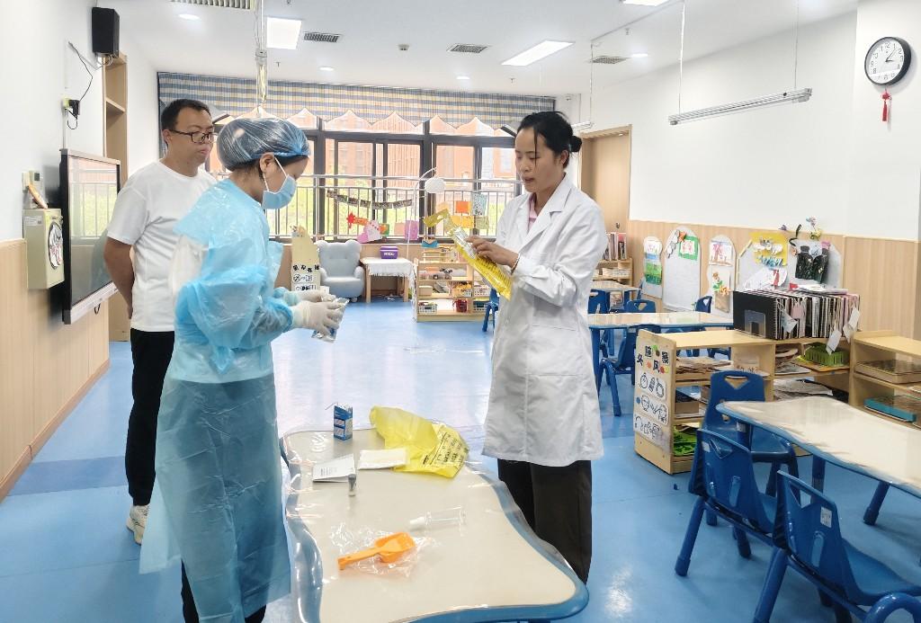 应急响应机制同步启动,副园长李莲莲立即向相关部门上报事件,并启动应急预案。全园进入预警状态,应急小组迅速行动:保育教师严格按操作规范完成呕吐物消杀及环境清洁;后勤保障组即刻叫停食品加工,封存留样食品、可疑原料及相关设备,整理查验索证索票文件,对厨房人员开展调查问询,为后续溯源提供依据。整个处置过程紧张有序,各环节衔接流畅高效。