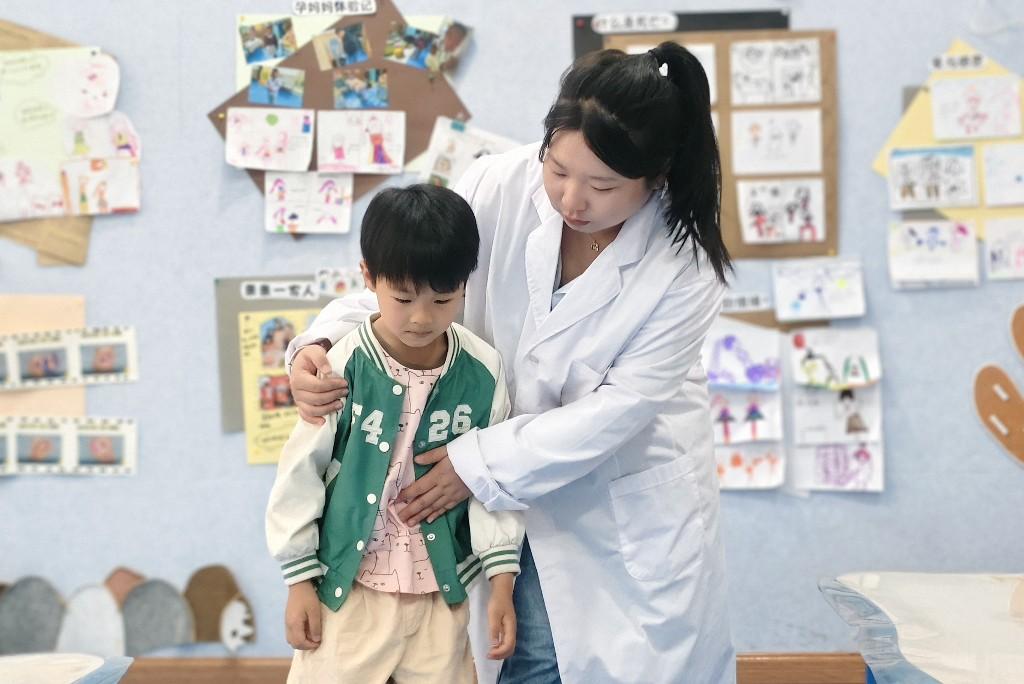 随着演练启动,模拟场景迅速展开:大二班多名幼儿在食用午点后,突发腹痛、呕吐、头晕等症状。班主任第一时间联系保健医,配班教师同步组织其他幼儿撤离污染区域,全程保持密切观察。保健医生抵达现场后,经初步诊断判定为疑似食物中毒,随即完成患儿转运、"120"急救呼叫、园长汇报等系列操作,并协同教师护送幼儿就医,及时与家长做好沟通安抚。