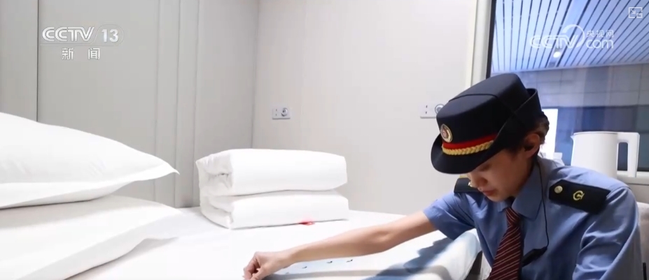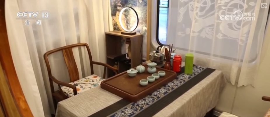 考虑到银发游客占比较高,列车上提供了一系列贴心服务。全列为卧铺,采用“酒店式”设计,电视、独立卫浴、智能温度调节系统等设施一应俱全。车厢里还有专业导游提供讲解服务,并提供品茶、下棋等活动,充分满足不同游客需求。