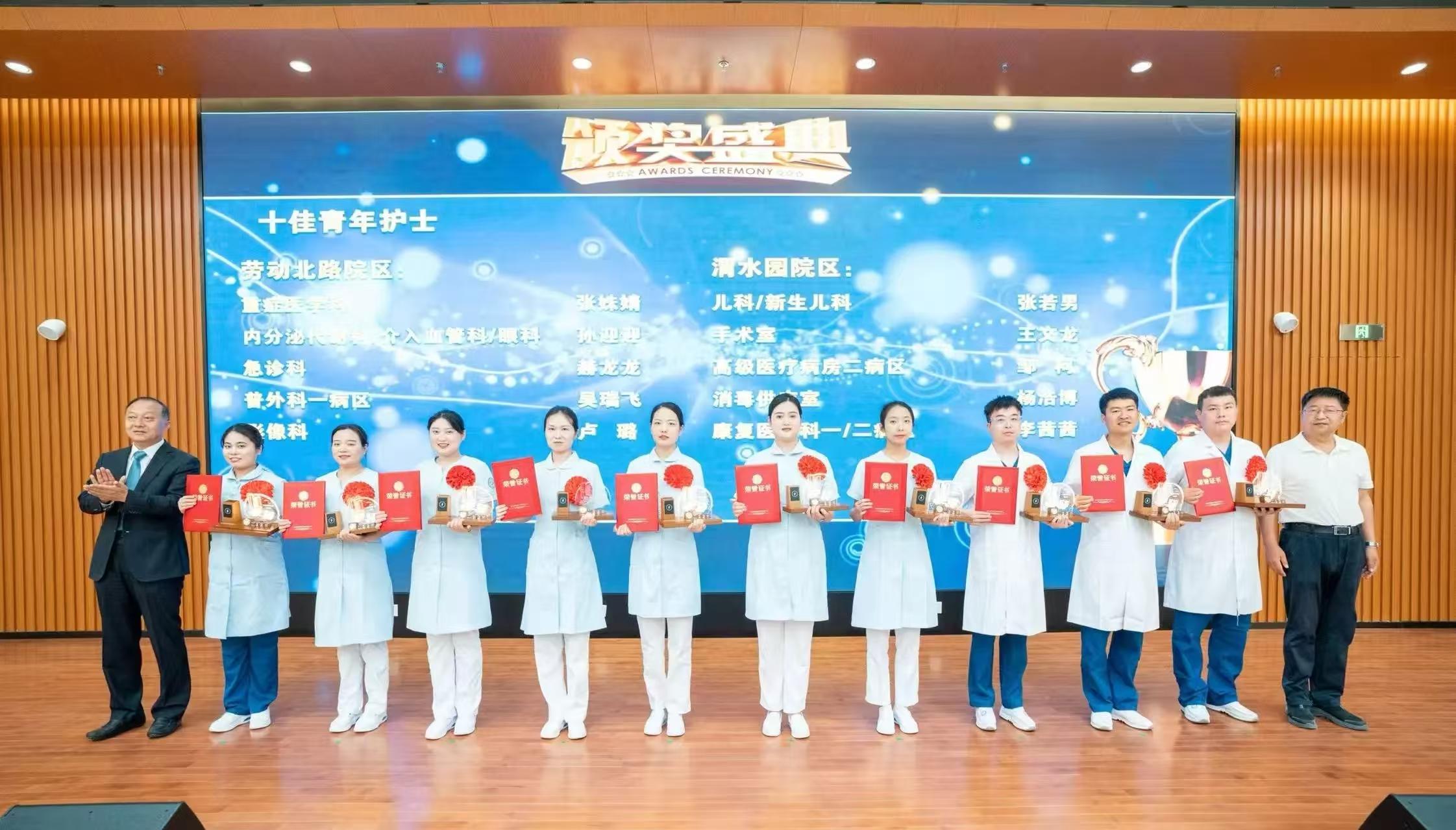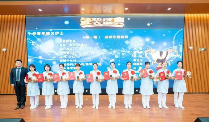 医党委书记、院长贺建军,党委副书记李振斌为“十佳青年护士”颁奖,并赠送可充电提灯,寓意时刻不忘“充电”,充实自己,照亮患者。