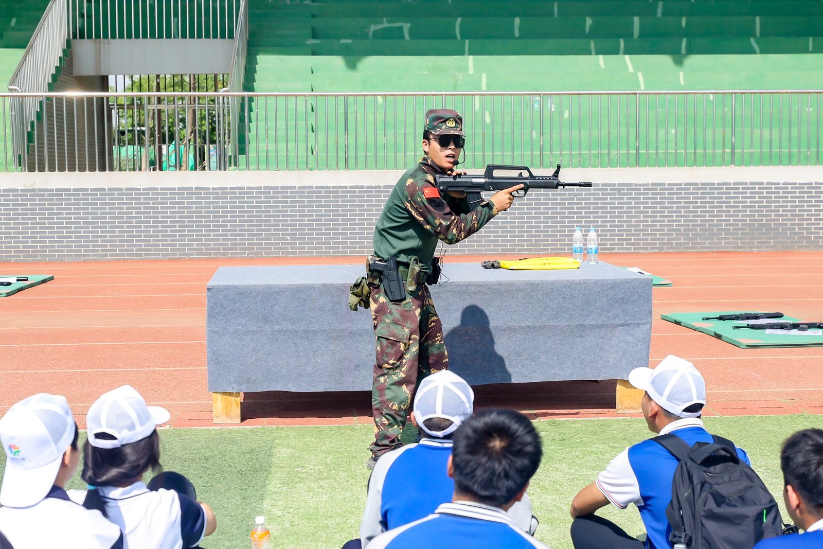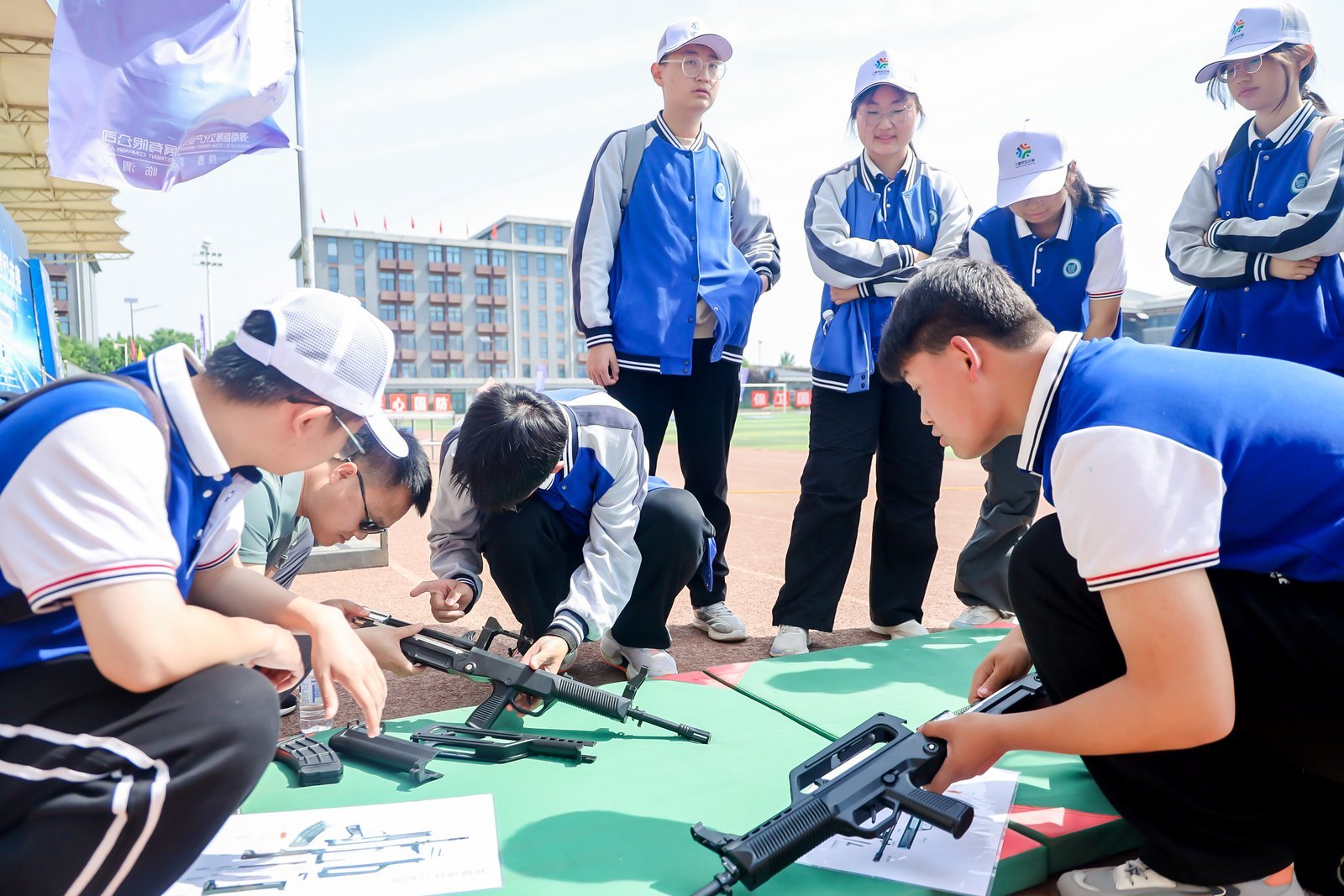 军事技能体验环节让学生们兴奋不已。在教官的指导下,他们分组进行了95-1式步枪模型拆装比赛和模拟打靶体验,尽管只是模拟训练,但学生们却表现得异常认真,仿佛自己真的成为了一名战士。高一四班李硕轩表示,通过这次参观,他感受到了国家军事力量的强盛,今后将更加努力学习,为祖国的繁荣富强贡献自己的力量。