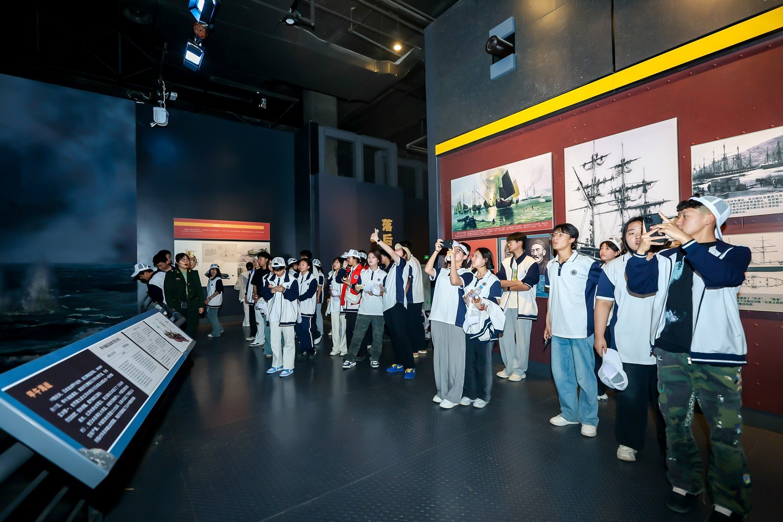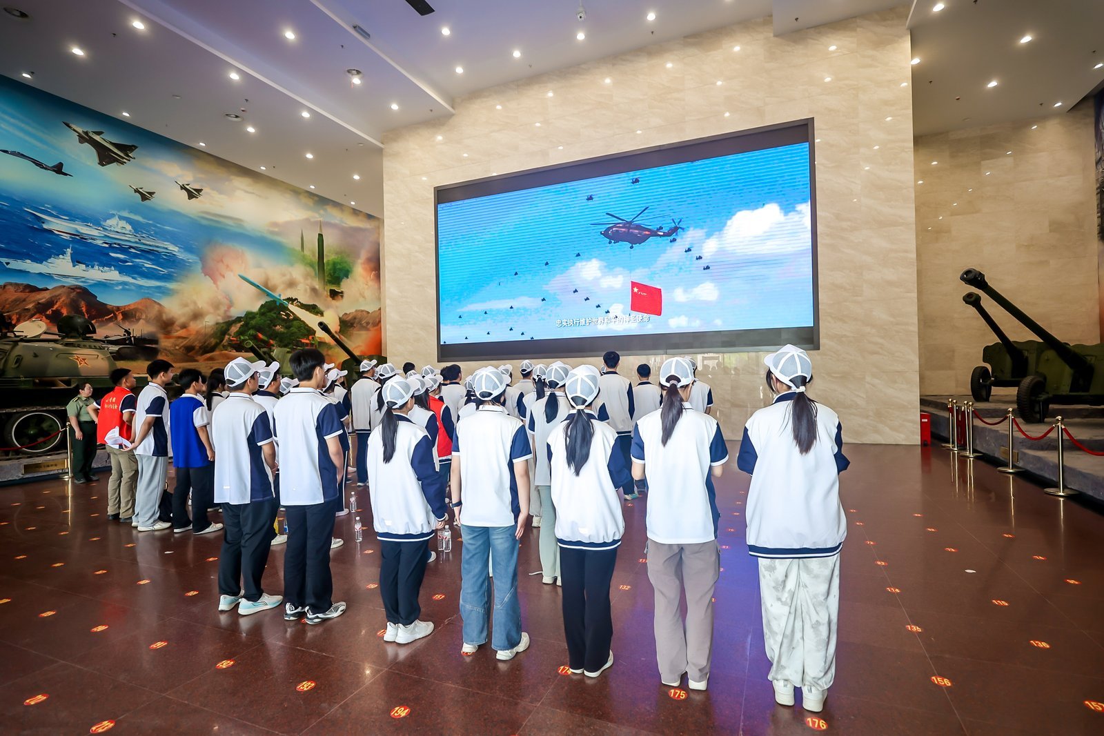 在博览园,学生们首先观看了4K高清国庆阅兵纪录片。军事专家的同步讲解让他们对武器装备的演变有了深入了解,东风系列导弹、歼-20模型等大国重器更是让他们惊叹不已,为国家的强大感到由衷的自豪。