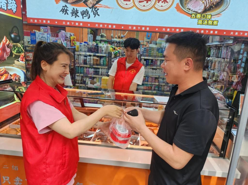下午,志愿者们将精心准备的卤肉礼包整齐摆放,礼包内包含招牌鸭脖、卤鸡腿、秘制鸭架等特色美食。店铺负责人刘媛表示:“作为社区合伙人,能用自家手艺回馈邻里很有意义,后期还会带来更多便民惠民的公益套餐。”