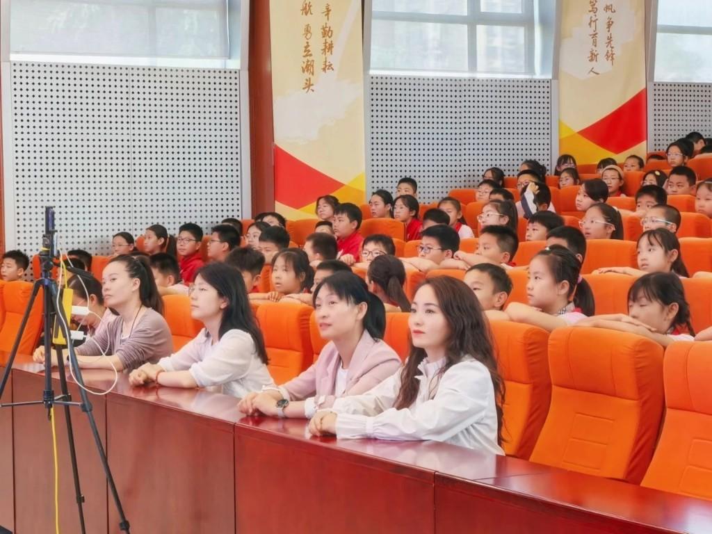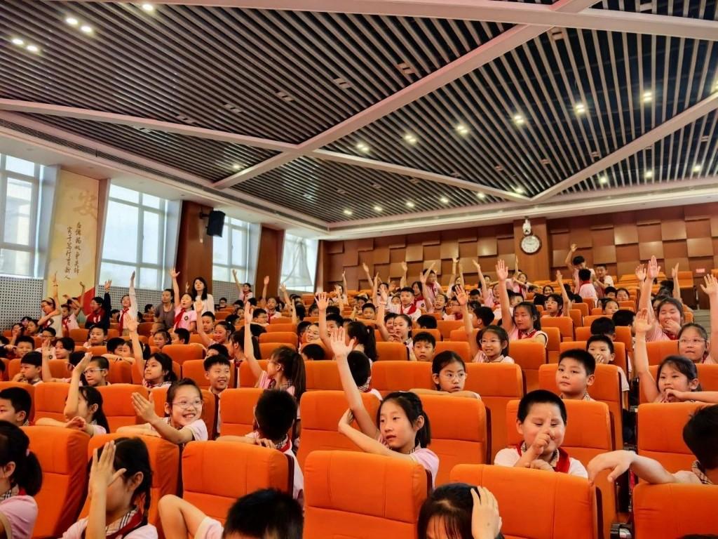 而现场教授环节则是活动的最大亮点。演员们邀请孩子们上台体验水袖、手帕及丑角念白等技艺。孩子们从最初的羞涩拘谨,到在演员耐心指导下逐渐放开手脚勇敢尝试。他们努力模仿演员的动作,挥舞水袖、抛接手帕、念着丑角台词,虽动作稚嫩,但热情专注。台下同学纷纷加油助威,现场气氛热烈非凡。