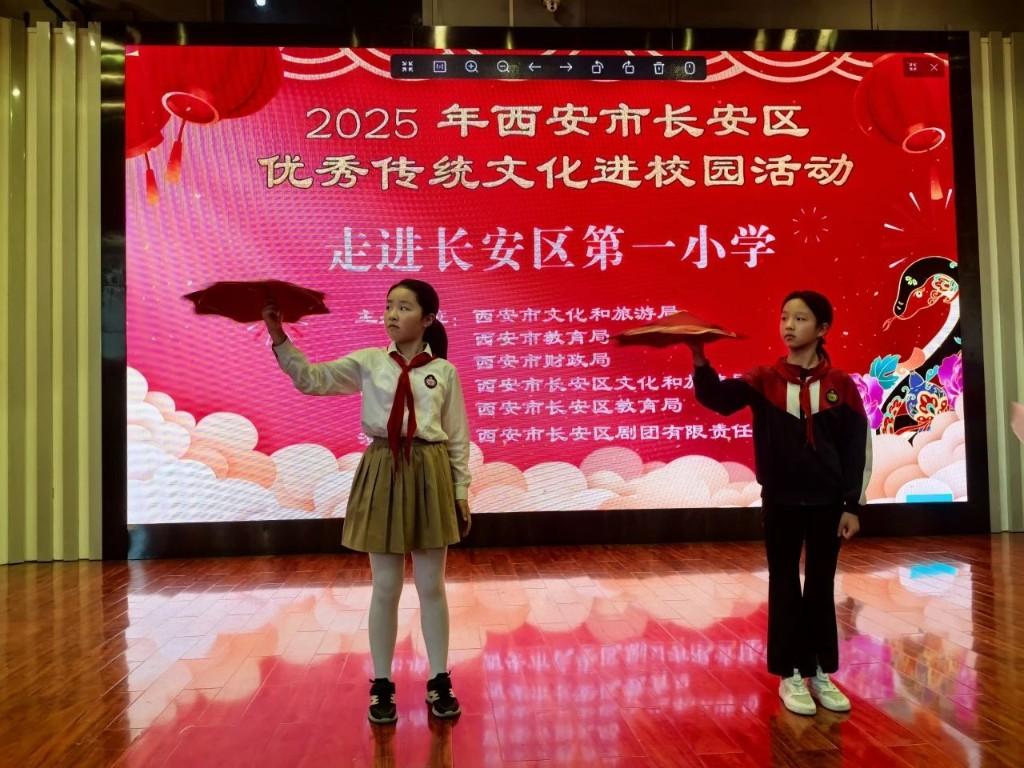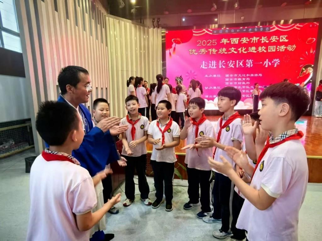 三秦都市报-三秦网讯(记者 郭子荻)古韵新声传薪火,文化润心启童蒙。5月13日,长安区第一小学的校园里弦歌婉转,长安区剧团的艺术家们携千年文脉走进菁菁校园,以一场沉浸式传统文化盛宴,为师生们铺展中华美学的瑰丽画卷。从韵味悠长的戏曲唱腔到灵动鲜活的非遗技艺展演,艺术的魅力在舞台上绽放,传统文化的种子正悄然植根于少年们的心间,静待来日抽枝展叶,生长出传承创新的盎然新绿。