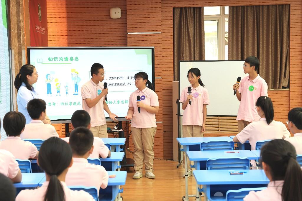 参会领导实地参观了学生发展指导中心,深入了解了学校在心理学科特色建设、学生发展支持领域的创新成果与实践成效。随后,该校心理教师赵千秋老师进行了《亲“说”有别》的心理健康教育展示课。